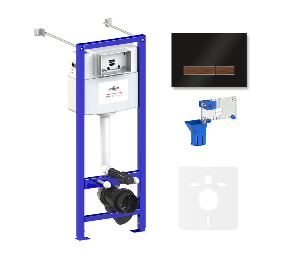 система инсталляции Relfix 38010020; комплект крепления для скрытого подвесного монтажа; шумоизоляция для подвесной керамики 38050010; клавиша смыва Relfix 38050702 (цвет черный/темное дерево, материал стекло, толщина 4 мм - одно из самых тонких решений на рынке); диспенсер для дезинфицирующих средств 38040010; гигиеническая таблетка (1 шт); инструкция по монтажу и эксплуатации; гарантийный талон. |