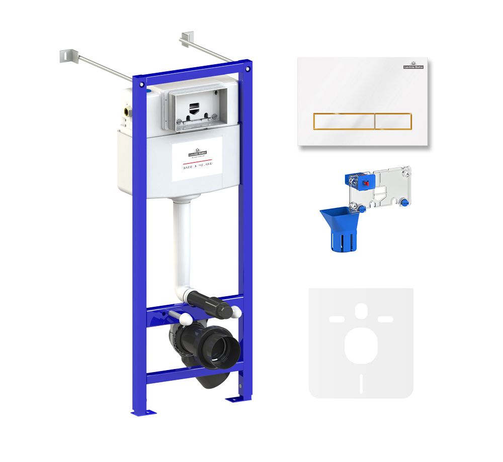 система инсталляции Relfix 38010020; комплект крепления для скрытого подвесного монтажа; шумоизоляция для подвесной керамики 38050010; клавиша смыва Relfix 38050802 (цвет белый/золотой глянец, материал пластик, толщина 13 мм - одно из самых тонких решений на рынке); диспенсер для дезинфицирующих средств 38040010; гигиеническая таблетка (1 шт); инструкция по монтажу и эксплуатации; гарантийный талон. |