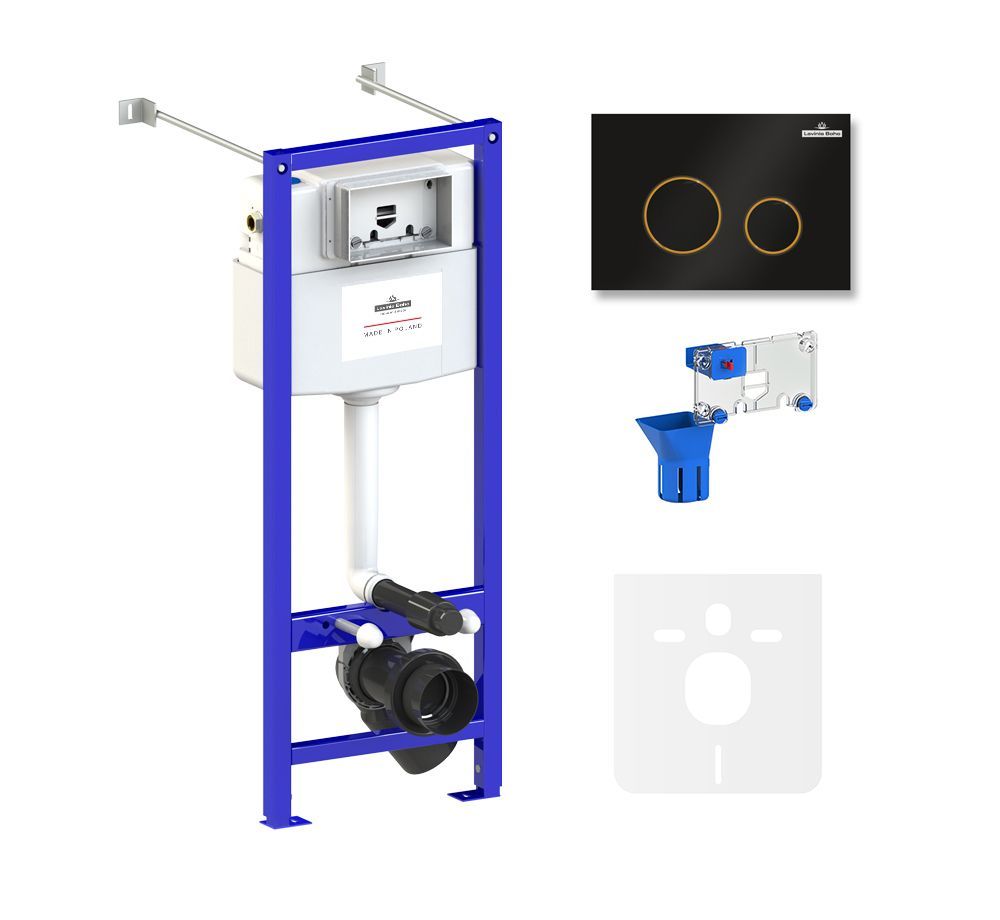 система инсталляции Relfix 38010020; комплект крепления для скрытого подвесного монтажа; шумоизоляция для подвесной керамики 38050010; клавиша смыва Relfix 38050803 (цвет матовый черный/золотой глянец, материал пластик, толщина 13 мм - одно из самых тонких решений на рынке); диспенсер для дезинфицирующих средств 38040010; гигиеническая таблетка (1 шт); инструкция по монтажу и эксплуатации; гарантийный талон. |