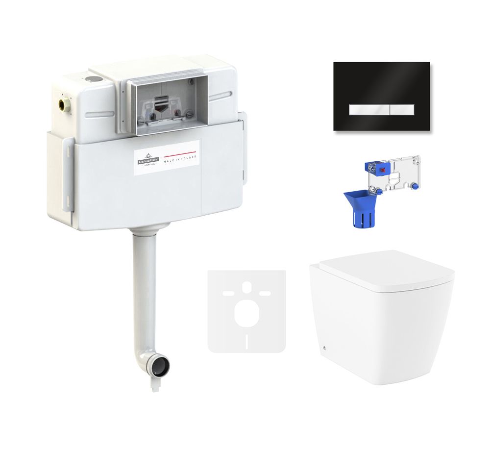 клавиша смыва; комплект крепежа; сиденье с крышкой; сливной бачок; сливной механизм; дозатор для дезинфицирующих средств |