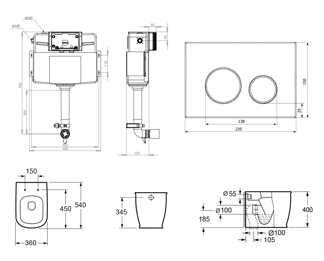 клавиша смыва; комплект крепежа; сиденье с крышкой; сливной бачок; сливной механизм; дозатор для дезинфицирующих средств |