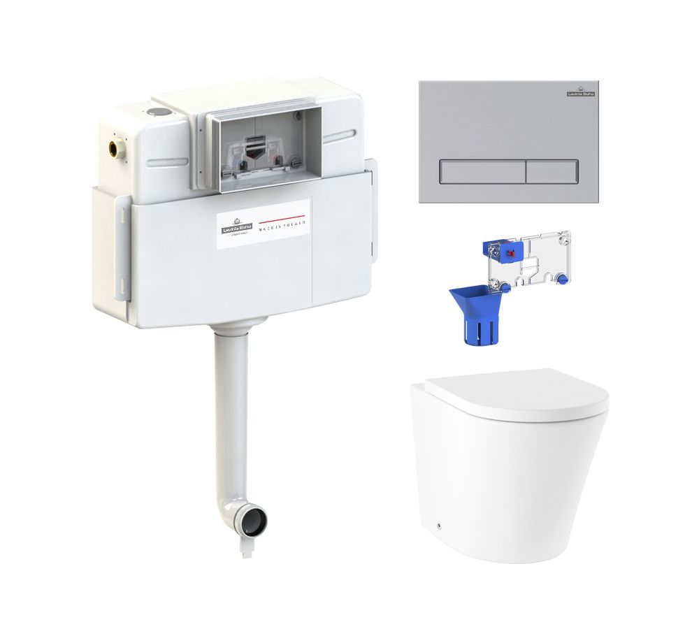 клавиша смыва; комплект крепежа; сиденье с крышкой; сливной бачок; сливной механизм; дозатор для дезинфицирующих средств |
