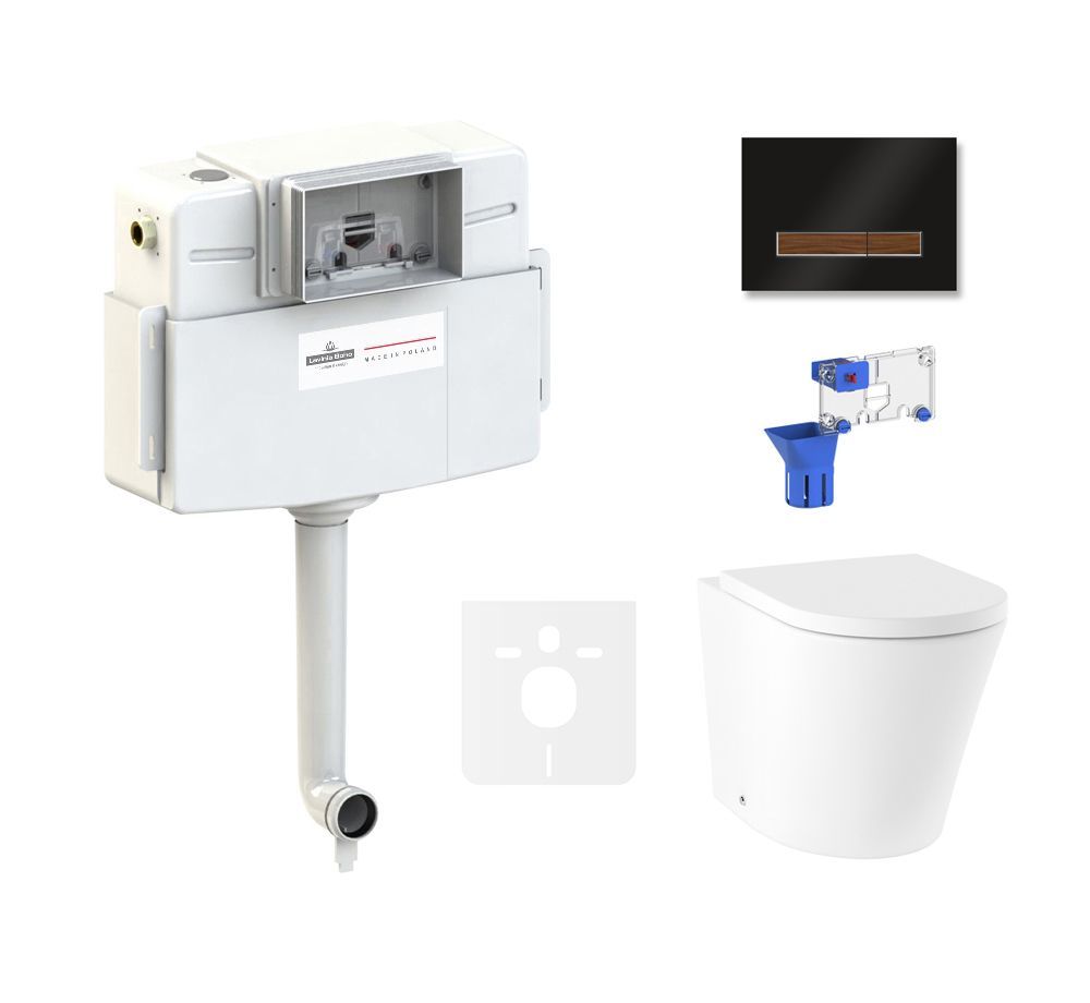 клавиша смыва; комплект крепежа; сиденье с крышкой; сливной бачок; сливной механизм; дозатор для дезинфицирующих средств |