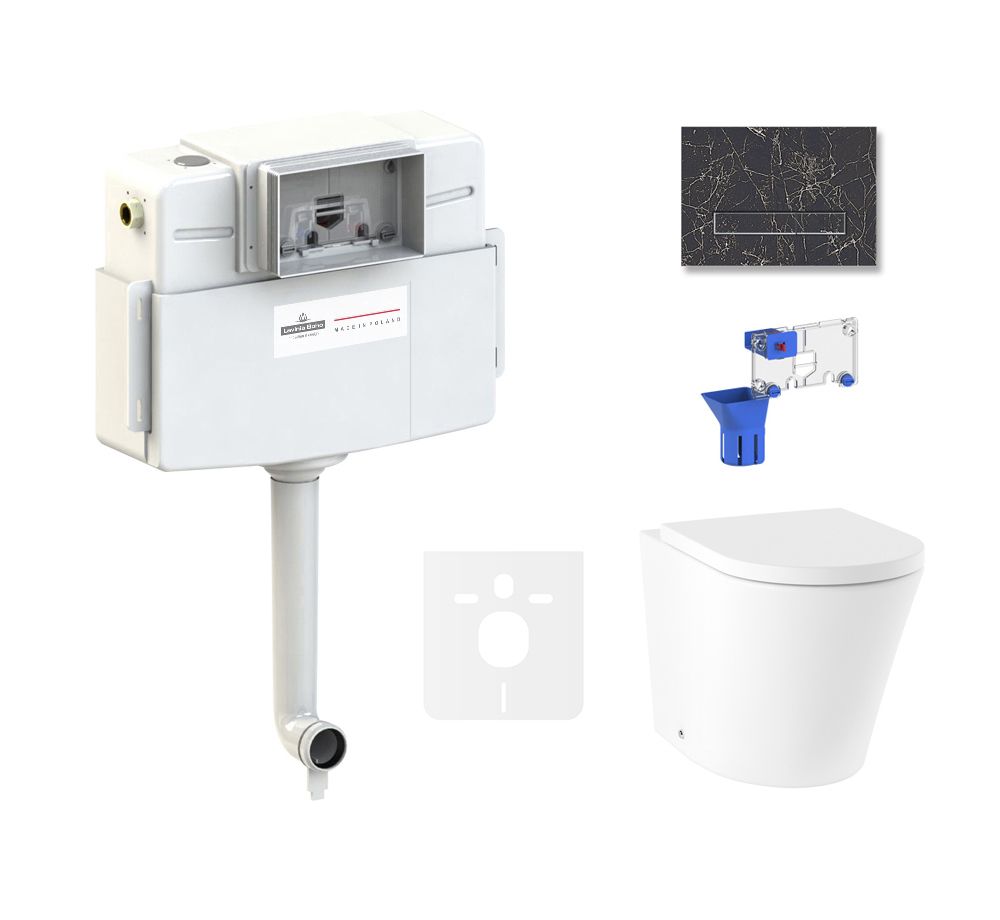 клавиша смыва; комплект крепежа; сиденье с крышкой; сливной бачок; сливной механизм; дозатор для дезинфицирующих средств |