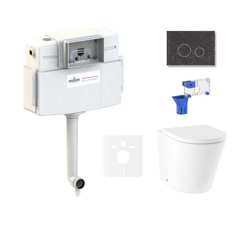 клавиша смыва; комплект крепежа; сиденье с крышкой; сливной бачок; сливной механизм; дозатор для дезинфицирующих средств |