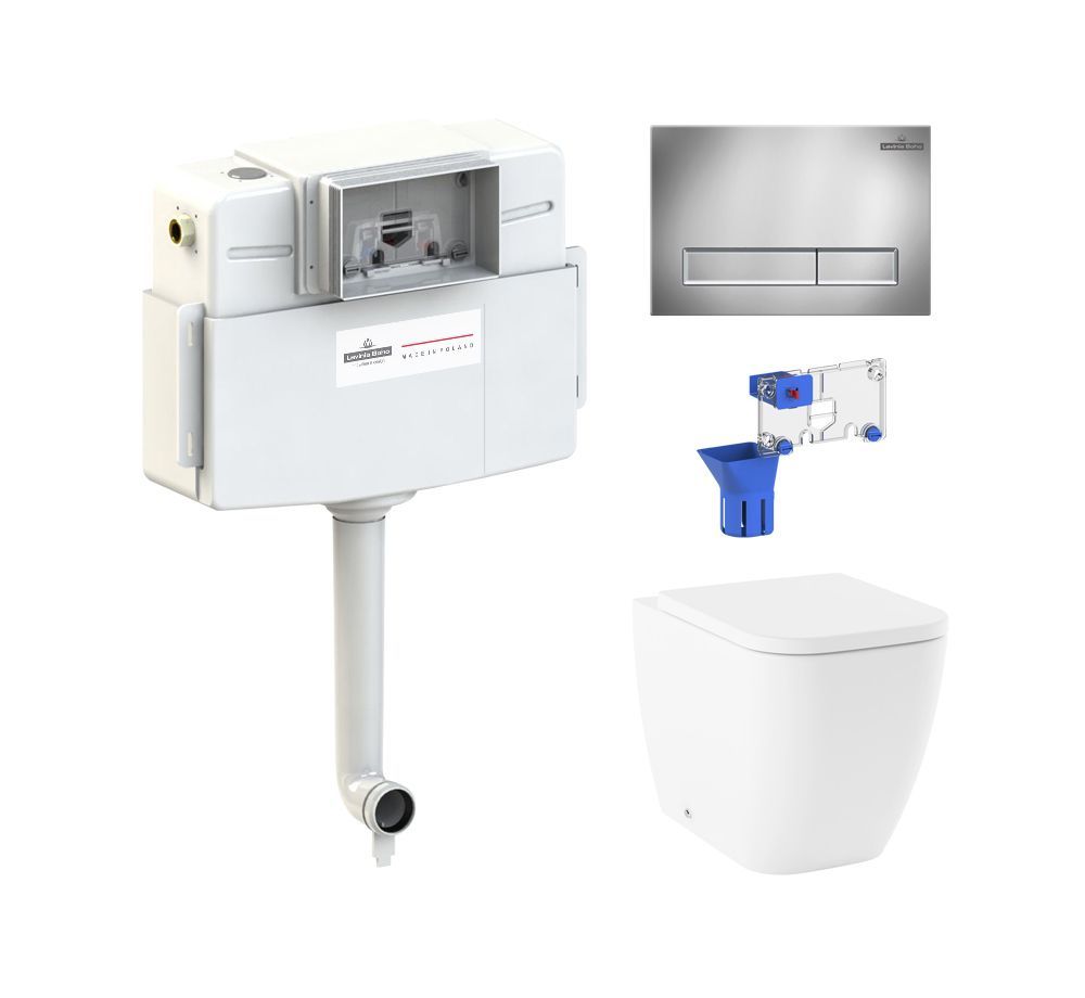 клавиша смыва; комплект крепежа; сиденье с крышкой; сливной бачок; сливной механизм; дозатор для дезинфицирующих средств |