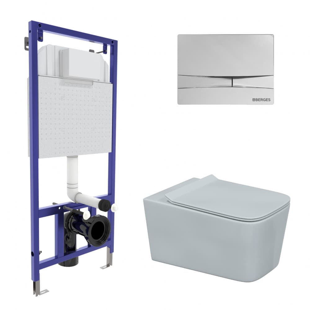 Полный комплект BERGES для монтажа подвесного унитаза: узкая инсталляция NOVUM525: толщина бачка 80мм, смыв 3/7 литра, нагрузка 400 кг, антикоррозийное покрытие, кнопка F3 хром глянец, унитаз FLOE Rimless, сидение дюропласт Floe Slim SO, микролифт, быстросъем. Все крепежи для установки в комплекте. Возможность установки в угол.