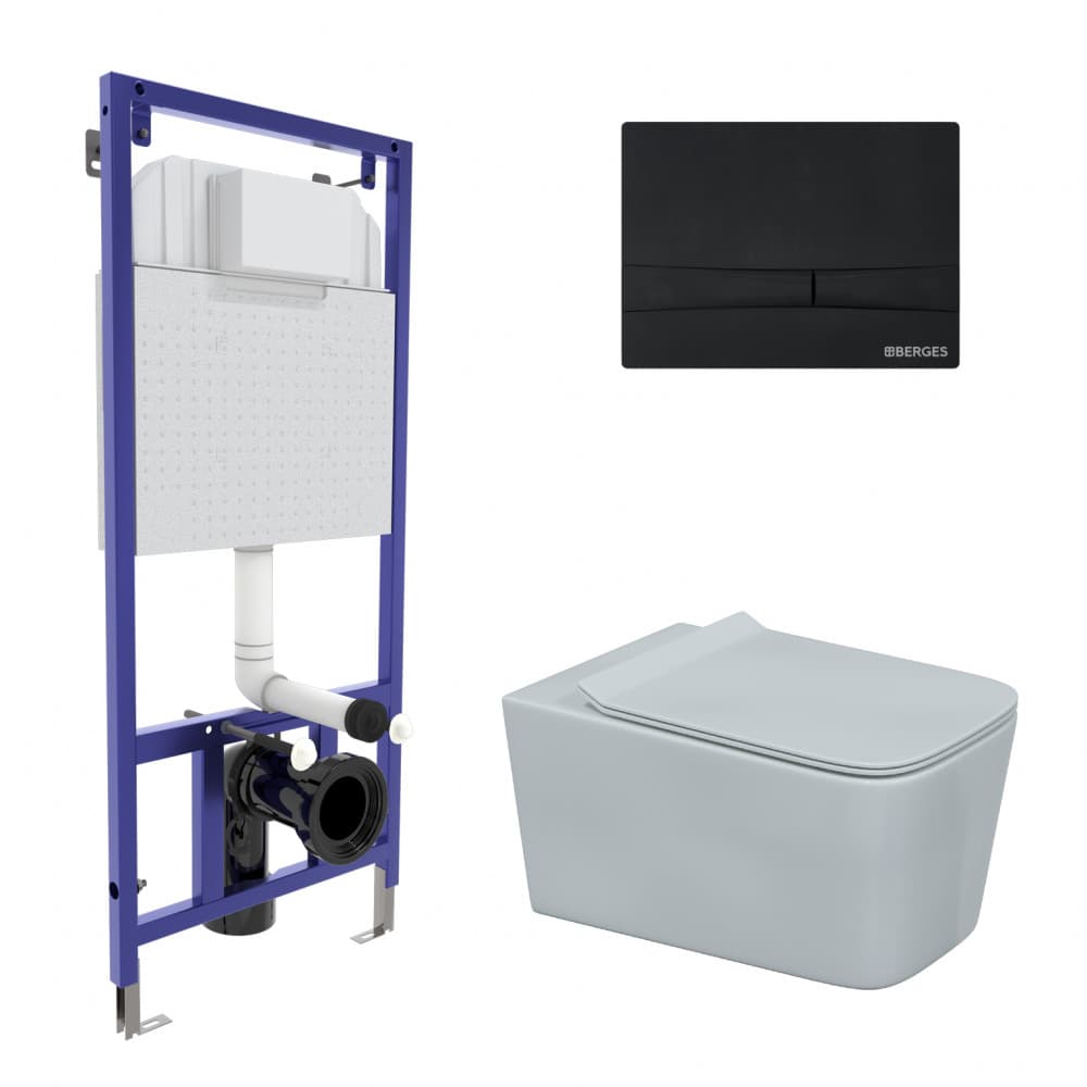 Полный комплект BERGES для монтажа подвесного унитаза: узкая инсталляция NOVUM525: толщина бачка 80мм, смыв 3/7 литра, нагрузка 400 кг, антикоррозийное покрытие, кнопка F5 SoftTouch черная, унитаз FLOE Rimless, сидение дюропласт Floe Slim SO, микролифт, быстросъем. Все крепежи для установки в комплекте. Возможность установки в угол.