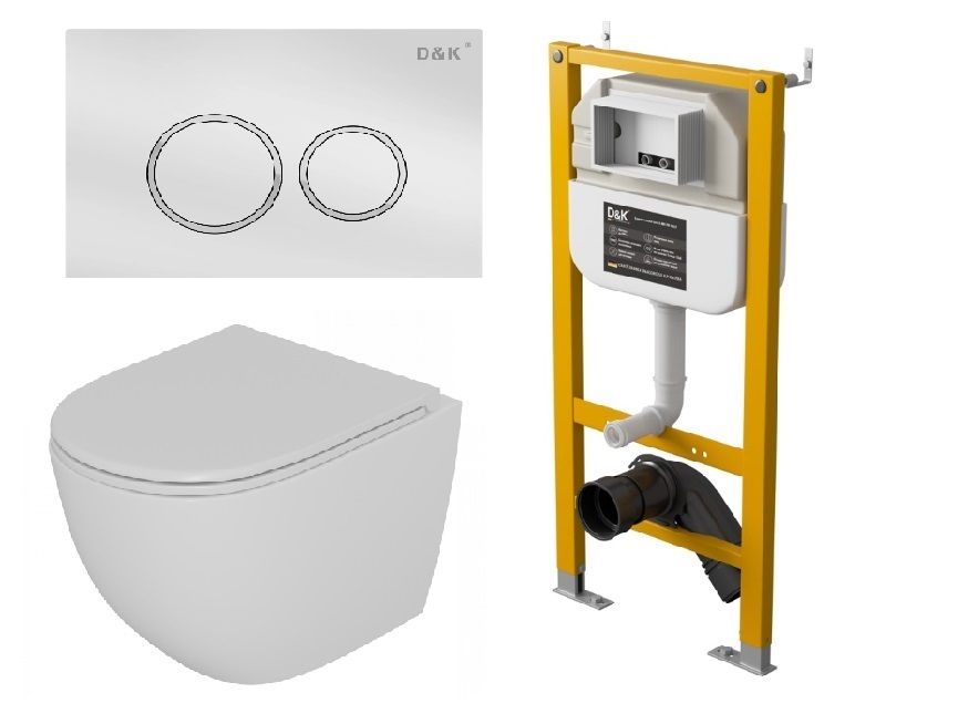 Комплект Унитаз подвесной безободковый D&K Matrix DT1396016+Инсталляция рамная скрытого монтажа D&K DI8050127, 500*117*1270мм, для подвесного унитаза+Клавиша смыва D&K Bayern DB1529016, белый |