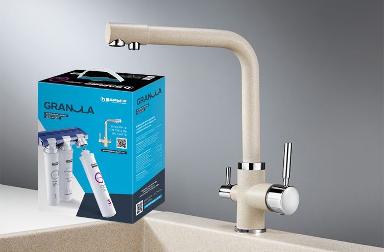 Оптимальный комплект Granula: смеситель и фильтр Барьер. Два крана для питьевой и проточной воды, 360° вращение, высокий излив и два рычага управления. В комплекте все для установки. Насладитесь чистой водой, избавившись от хлора, металлов и примесей. Обеспечьте своему дому здоровье и комфорт!