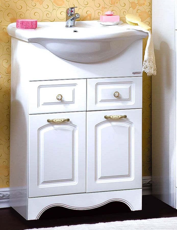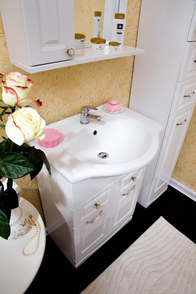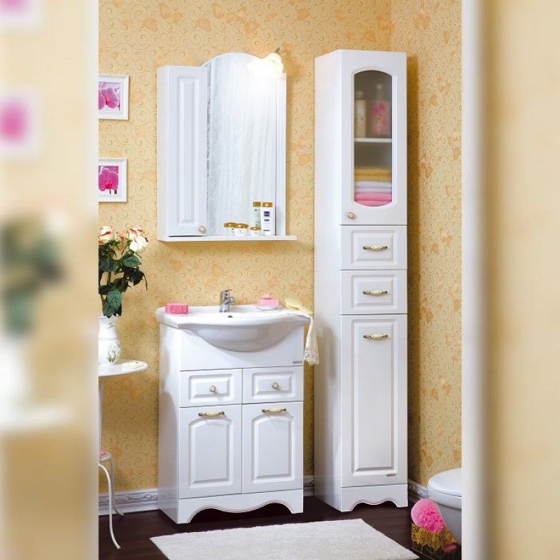 Комплект мебели Бриклаер Анна состоит из: Тумба под раковину напольная Бриклаер АННА белый , 60 см, Пенал Бриклаер АННА 32 см, белый,Раковина Santek Селигер 1.WH11.0.268, 60 см, Зеркало со шкафом Бриклаер АННА 60 см, левое.