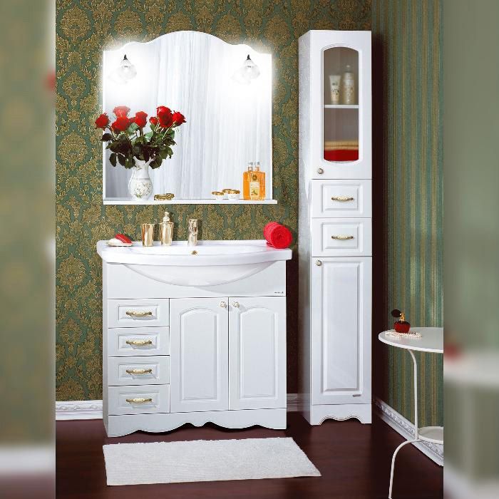 Комплект мебели Бриклаер Анна состоит из: Тумба под раковину напольная Бриклаер АННА белый , 90 см, Пенал Бриклаер АННА 32 см, белый,Раковина Santek Эльбрус 1.WH11.0.790, 90 см, Зеркало Бриклаер АННА 90 см, белый.