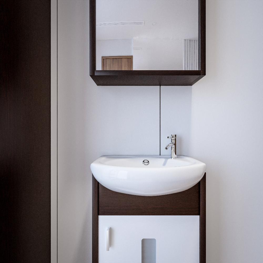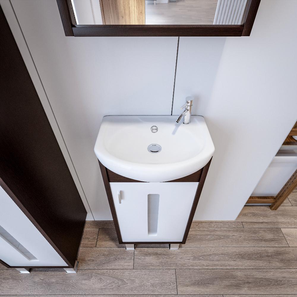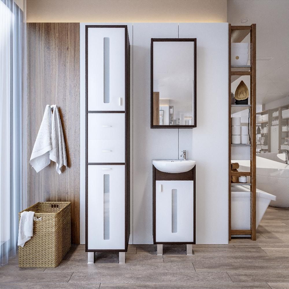Комплект мебели Бриклаер БАЛИ состоит из: Тумба под раковину напольная Бриклаер БАЛИ правая венге/белый , 40 см, Пенал Бриклаер БАЛИ 35 см, венге/белый, Раковина Santek Азов 1.WH11.0.254, 40 см, Зеркальный шкаф Бриклаер БАЛИ 40 см правый, венге/белый.