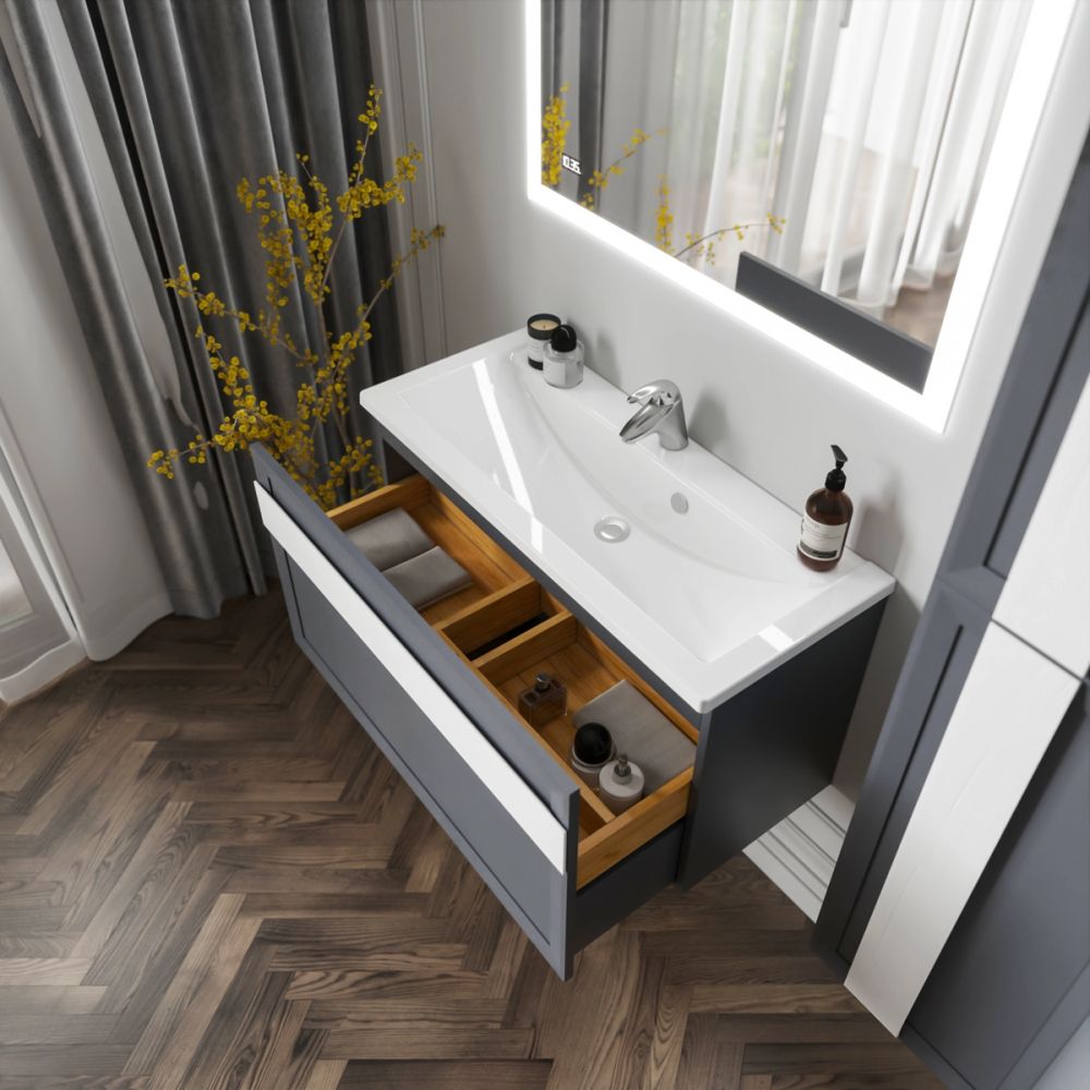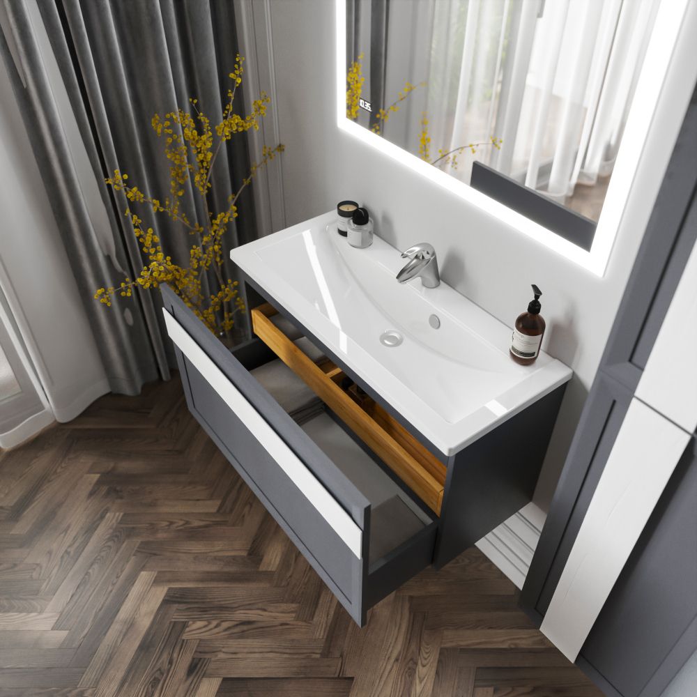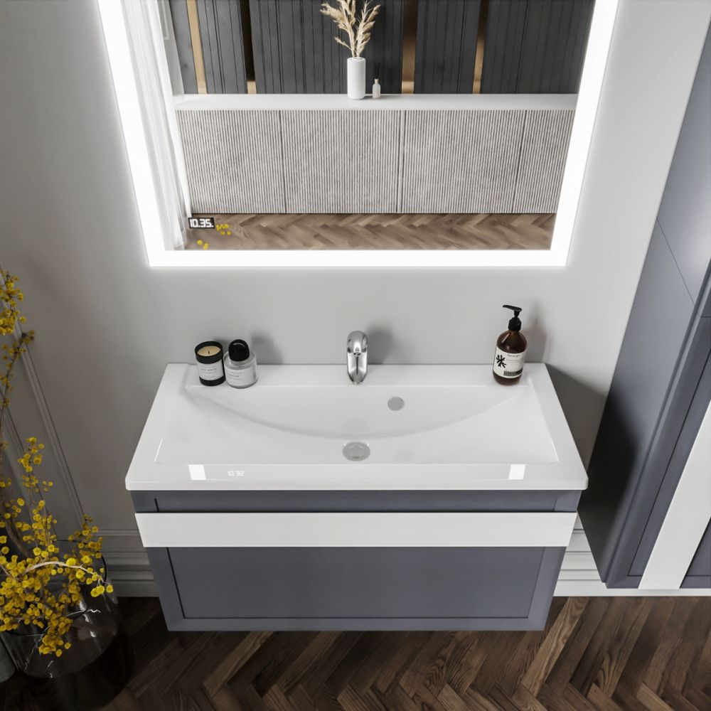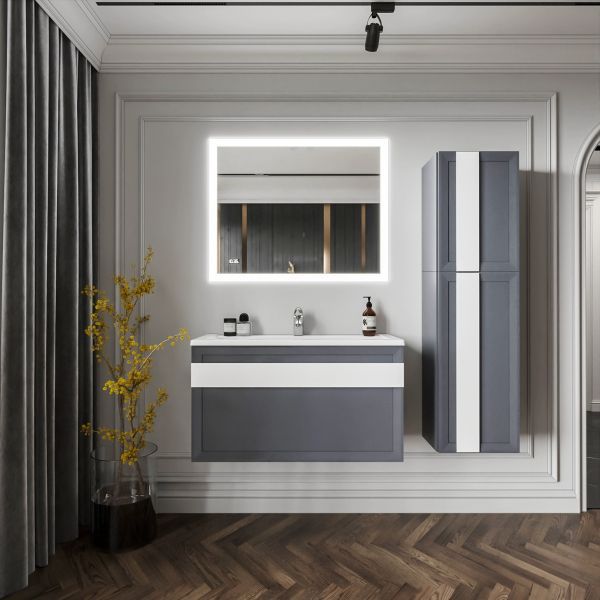 Комплект мебели Бриклаер БЕРЛИН состоит из: Тумба под раковину подвесная Бриклаер БЕРЛИН оникс серый, 100 см, Ручка для тумбы Бриклаер БЕРЛИН 100 см, белый, Раковина Paola Mario 1000, белый, Шкаф навесной Бриклаер БЕРЛИН 60 см, оникс серый, Шкаф навесной Бриклаер БЕРЛИН 90 см, оникс серый, Ручка для шкафа Бриклаер БЕРЛИН 60 см, белый, Ручка для шкафа Бриклаер БЕРЛИН 90 см, белый, Зеркало Бриклаер Вега/Мальта 100 LED подсветка на взмах руки, часы.