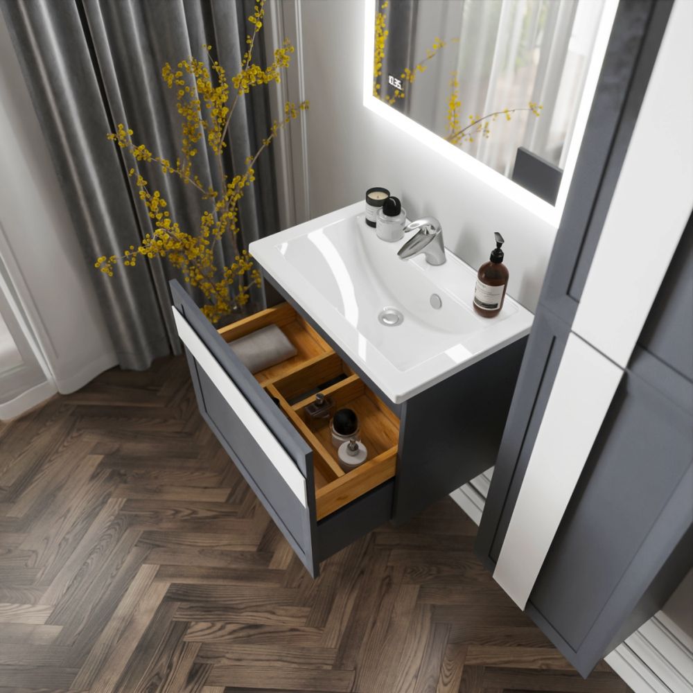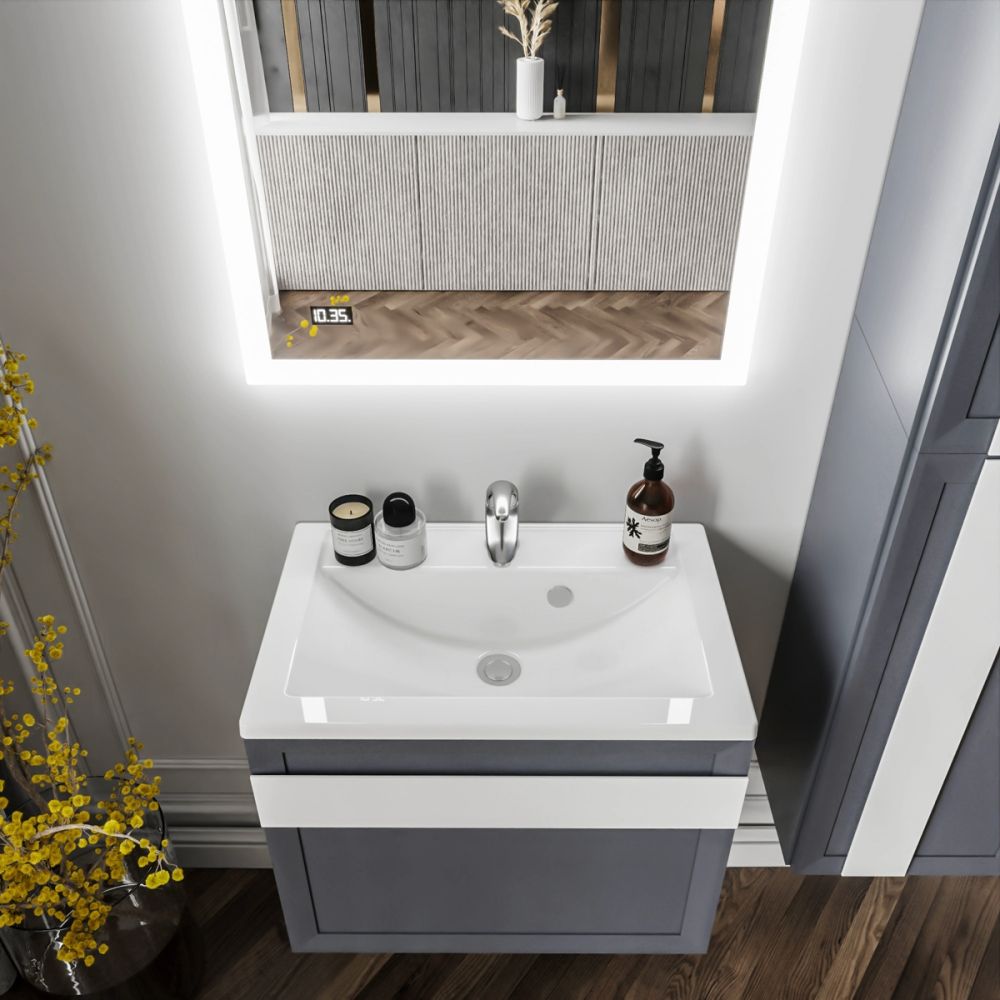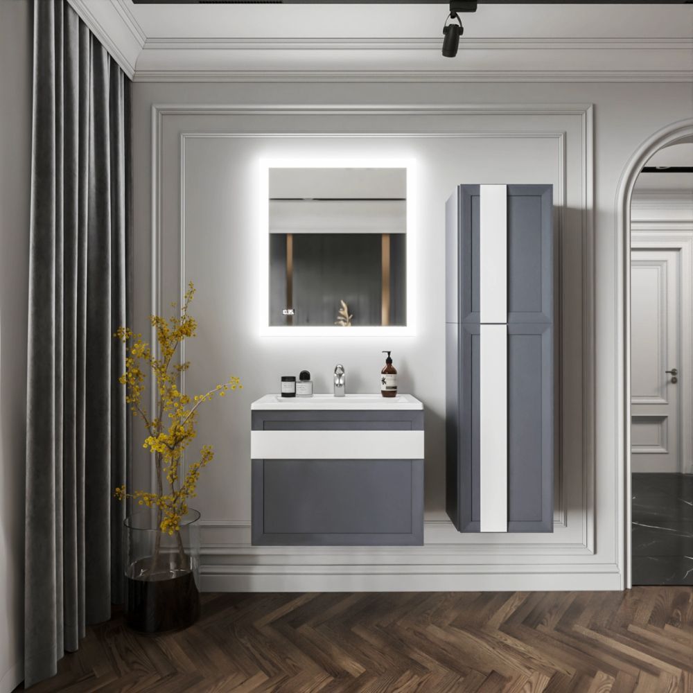 Комплект мебели Бриклаер БЕРЛИН состоит из: Тумба под раковину подвесная Бриклаер БЕРЛИН оникс серый, 70 см, Ручка для тумбы Бриклаер БЕРЛИН 70 см, белый, Раковина Paola Mario 700, белый, Шкаф навесной Бриклаер БЕРЛИН 60 см, оникс серый, Шкаф навесной Бриклаер БЕРЛИН 90 см, оникс серый, Ручка для шкафа Бриклаер БЕРЛИН 60 см, белый, Ручка для шкафа Бриклаер БЕРЛИН 90 см, белый, Зеркало Бриклаер Вега/Мальта 75 LED подсветка на взмах руки, часы.