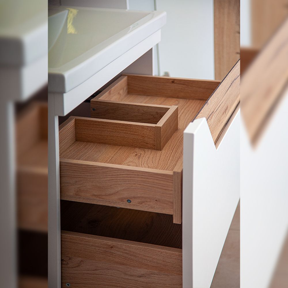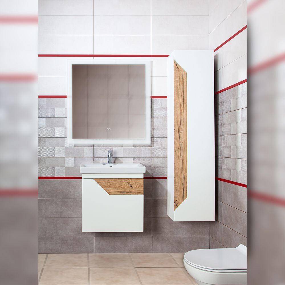 Комплект мебели Бриклаер Брайтон состоит из: Тумба под раковину подвесная Бриклаер Брайтон белый/дуб, 60 см, Раковина Cersanit MODUO SLIM UM-MOD60SL/1, 60 см, Пенал Бриклаер Брайтон 38 см, белый/дуб, Зеркало Эстель-1 60 с подсветкой LED, кнопочный выключатель.
