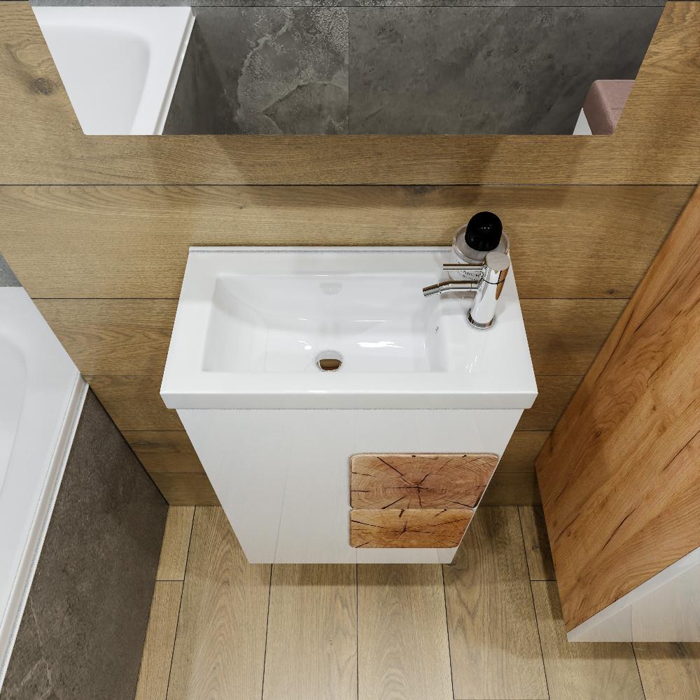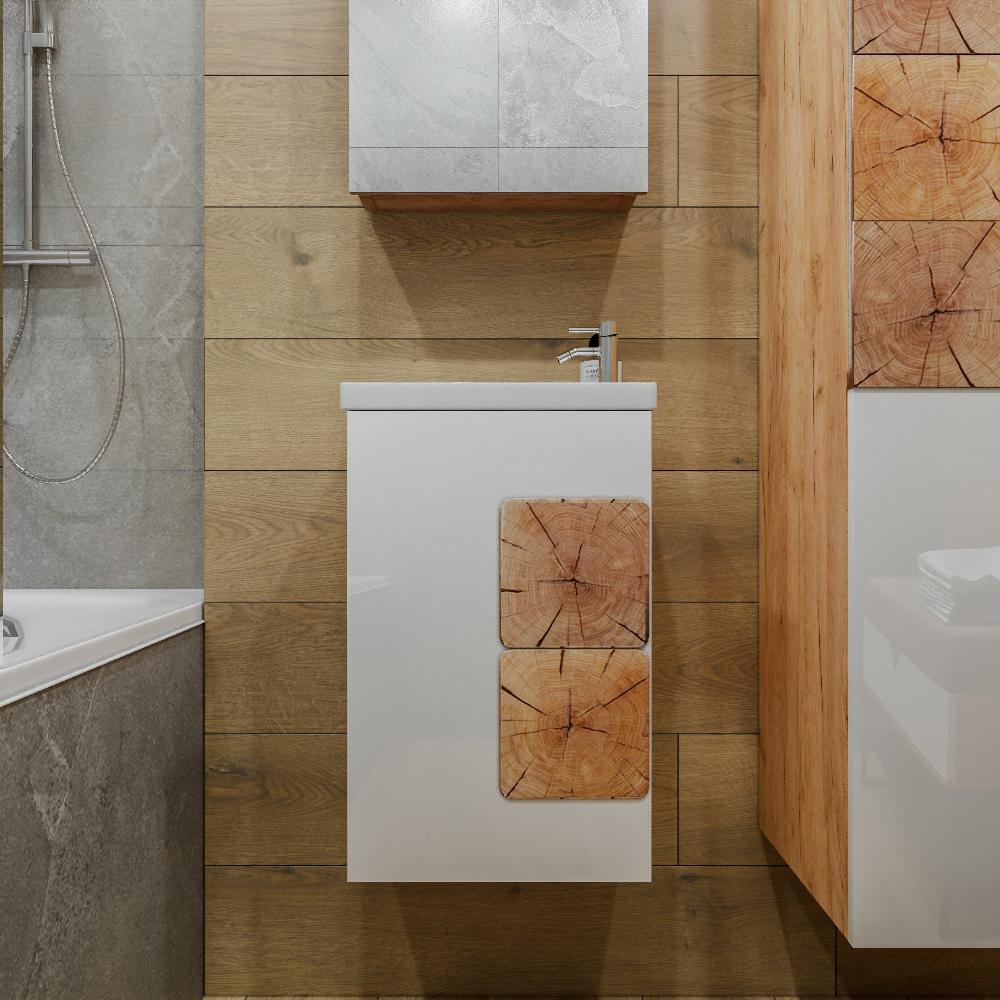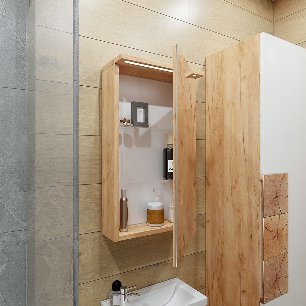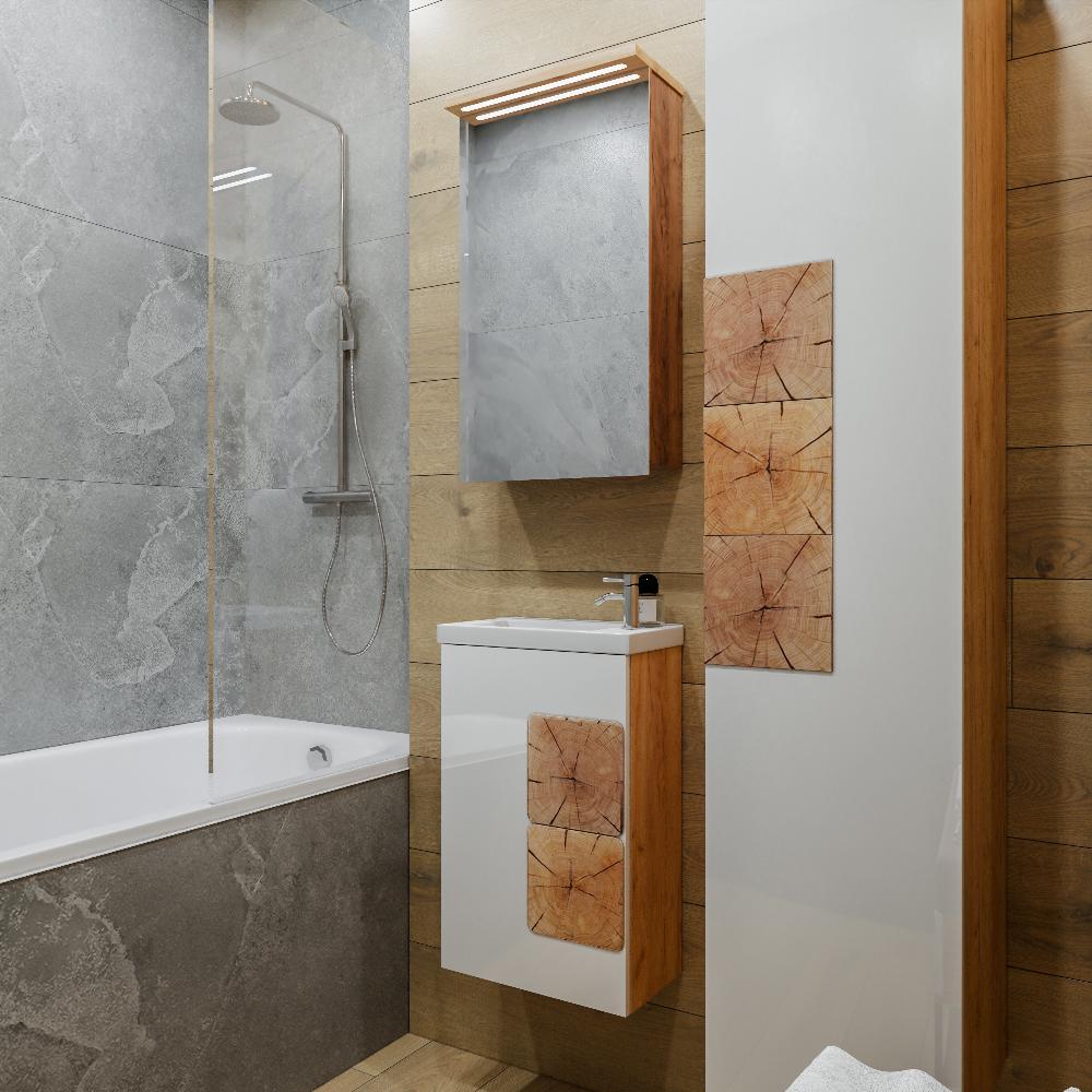 Комплект мебели Бриклаер Форест состоит из: Тумба под раковину подвесная Бриклаер Форест дуб золотой/белый, 40 см, Раковина Cersanit Como UM-COM40/1, 40 см, Зеркальный шкаф Бриклаер Форест 40 см, дуб золотой/антрацит.