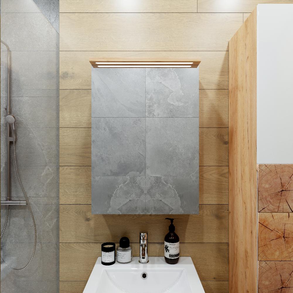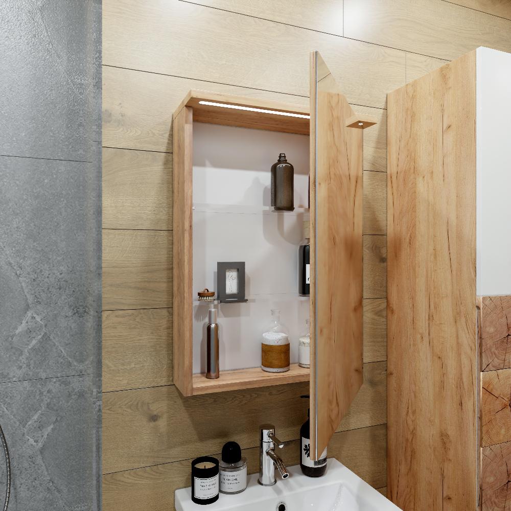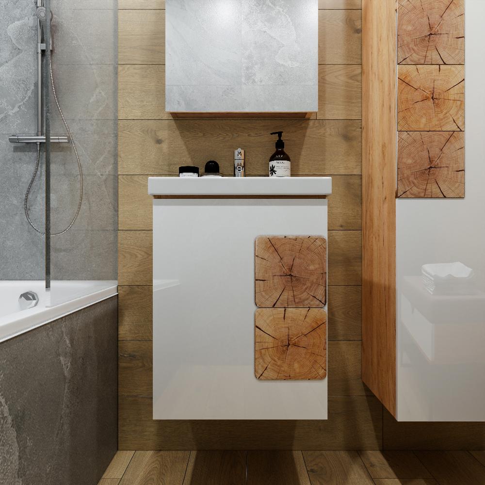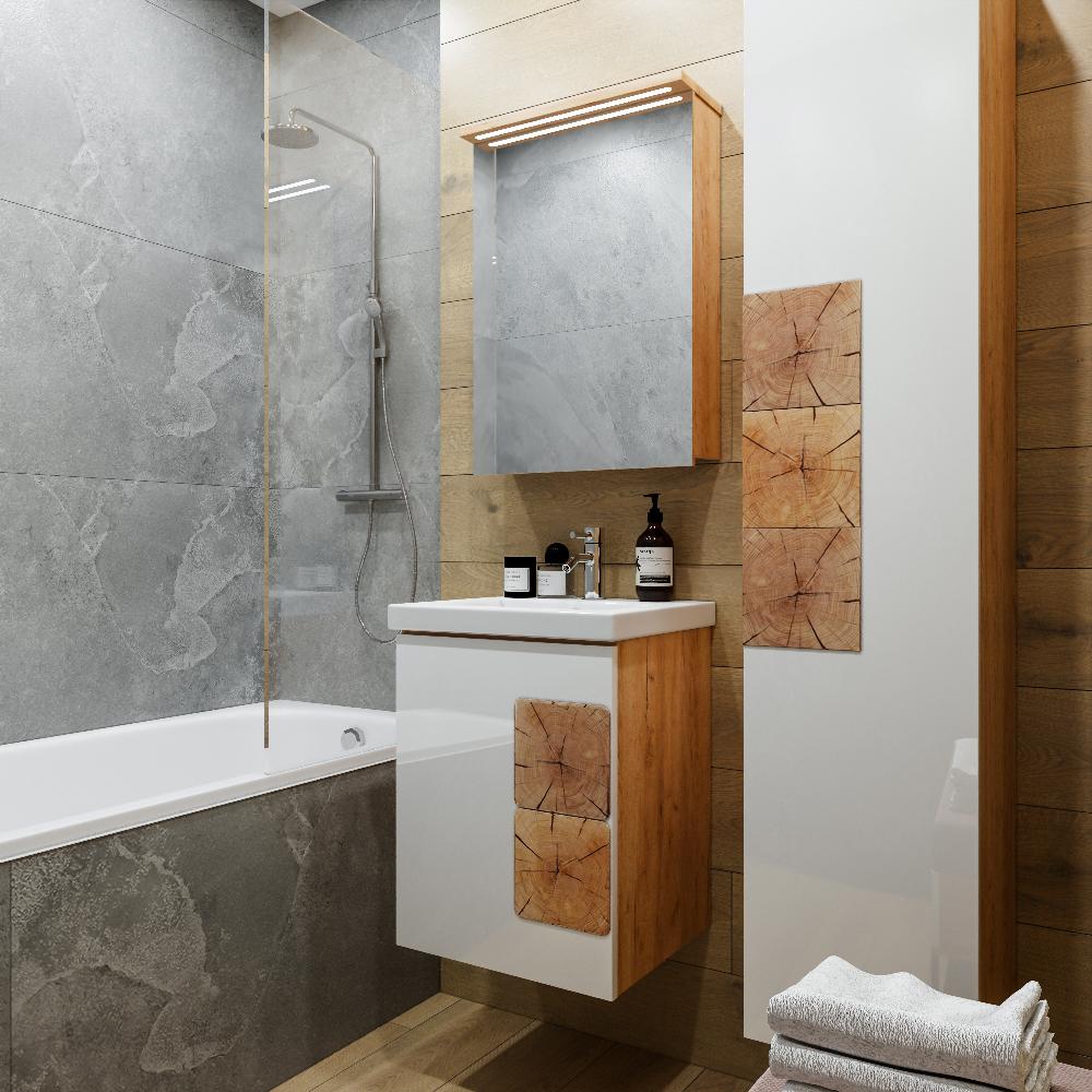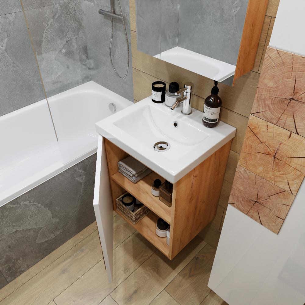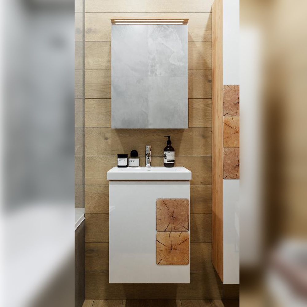 Комплект мебели Бриклаер Форест состоит из: Тумба под раковину подвесная Бриклаер Форест дуб золотой/белый, 50 см, Раковина Cersanit Como UM-COM50/1, 50 см, Зеркальный шкаф Бриклаер Форест 50 см, дуб золотой/антрацит.