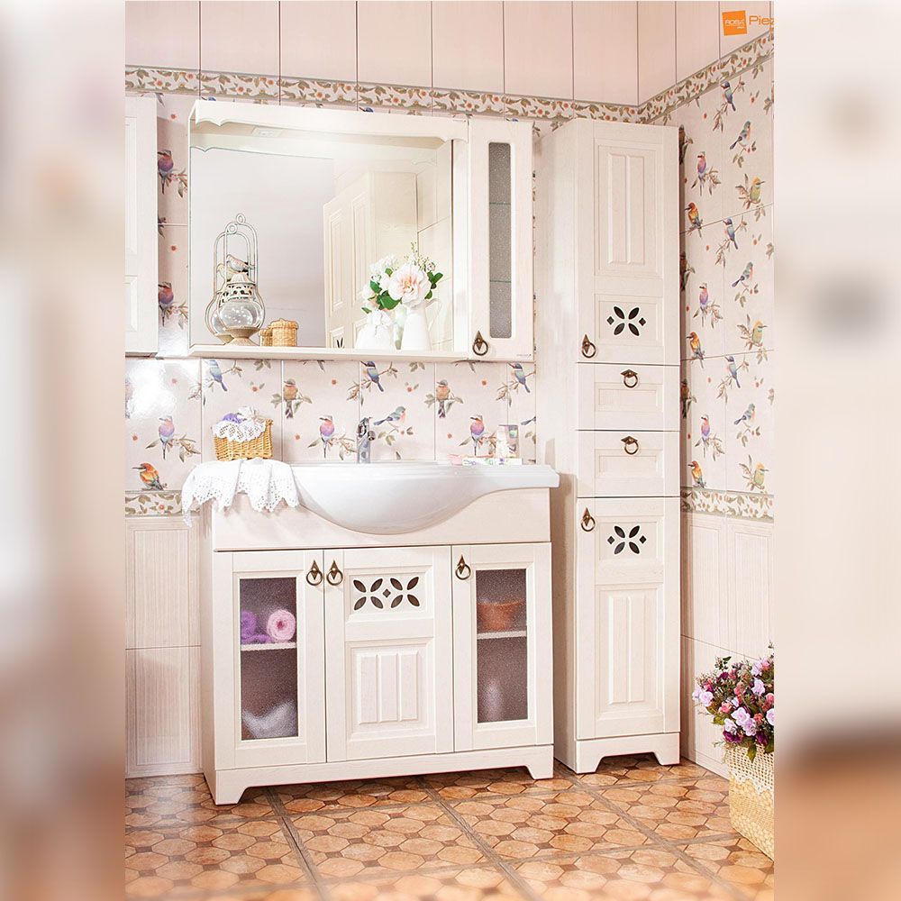 Комплект мебели Бриклаер КАНТРИ состоит из: Тумба под раковину напольная Бриклаер КАНТРИ бежевый дуб прованс, 105 см, Раковина Kirovit Классик, 105 см, Зеркало КАНТРИ 85 см, бежевый дуб прованс, Пенал Бриклаер КАНТРИ 35 см, бежевый дуб прованс.
