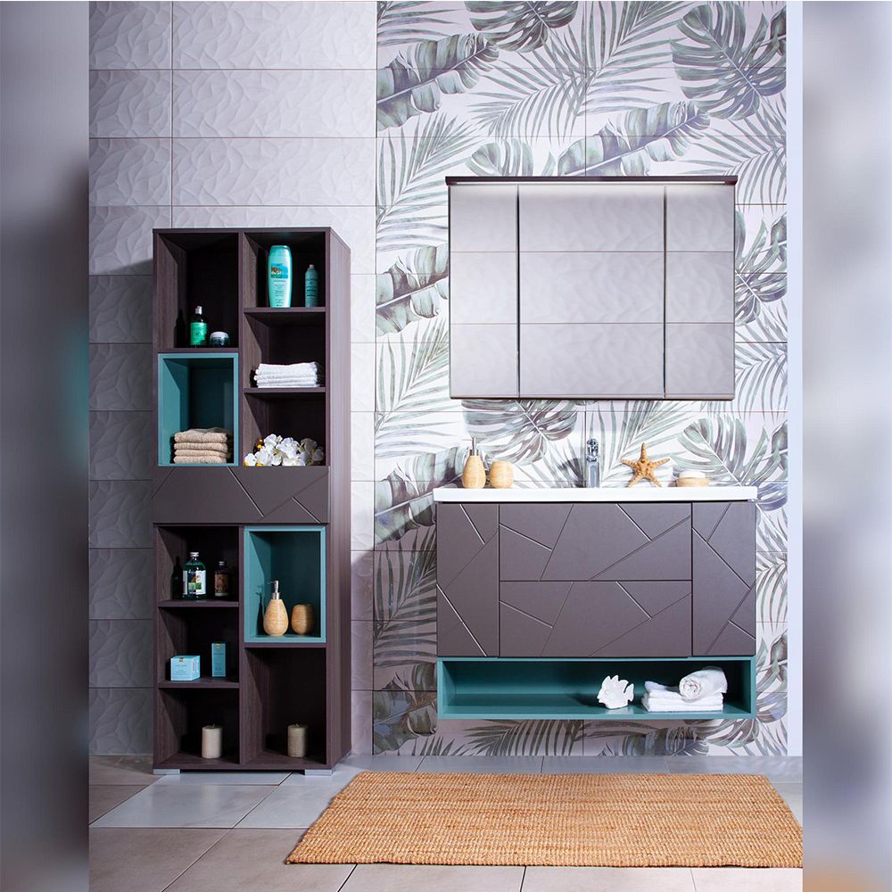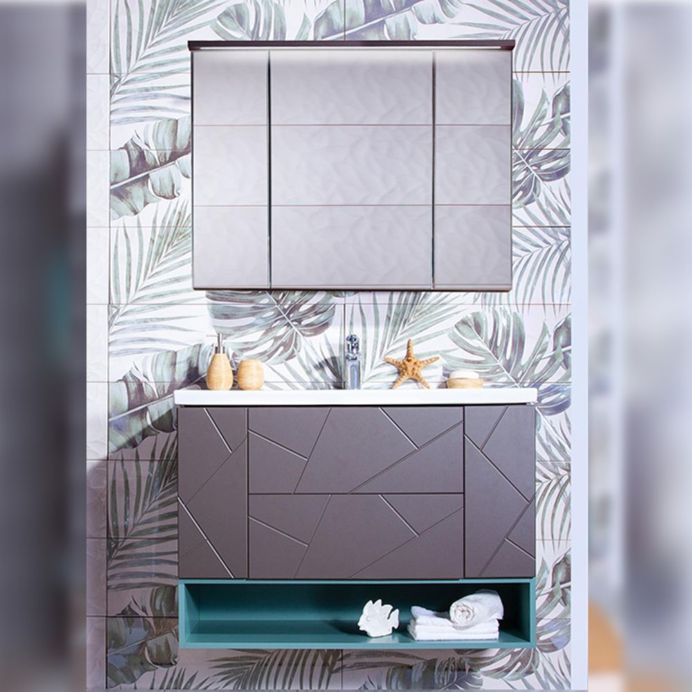 Комплект мебели Бриклаер КРИСТАЛЛ состоит из: Тумба под раковину подвесная Бриклаер КРИСТАЛЛ ясень анкор темный/графит, 100 см, Раковина Kirovit Фостер 1000, 101,2 см, Ниша для тумбы Бриклаер КРИСТАЛЛ 100 см, муссон, Зеркальный шкаф Бриклаер КРИСТАЛЛ 95 см, ясень анкор темный.