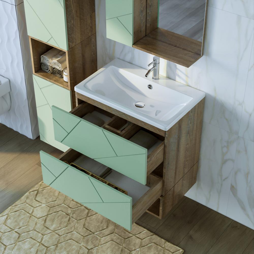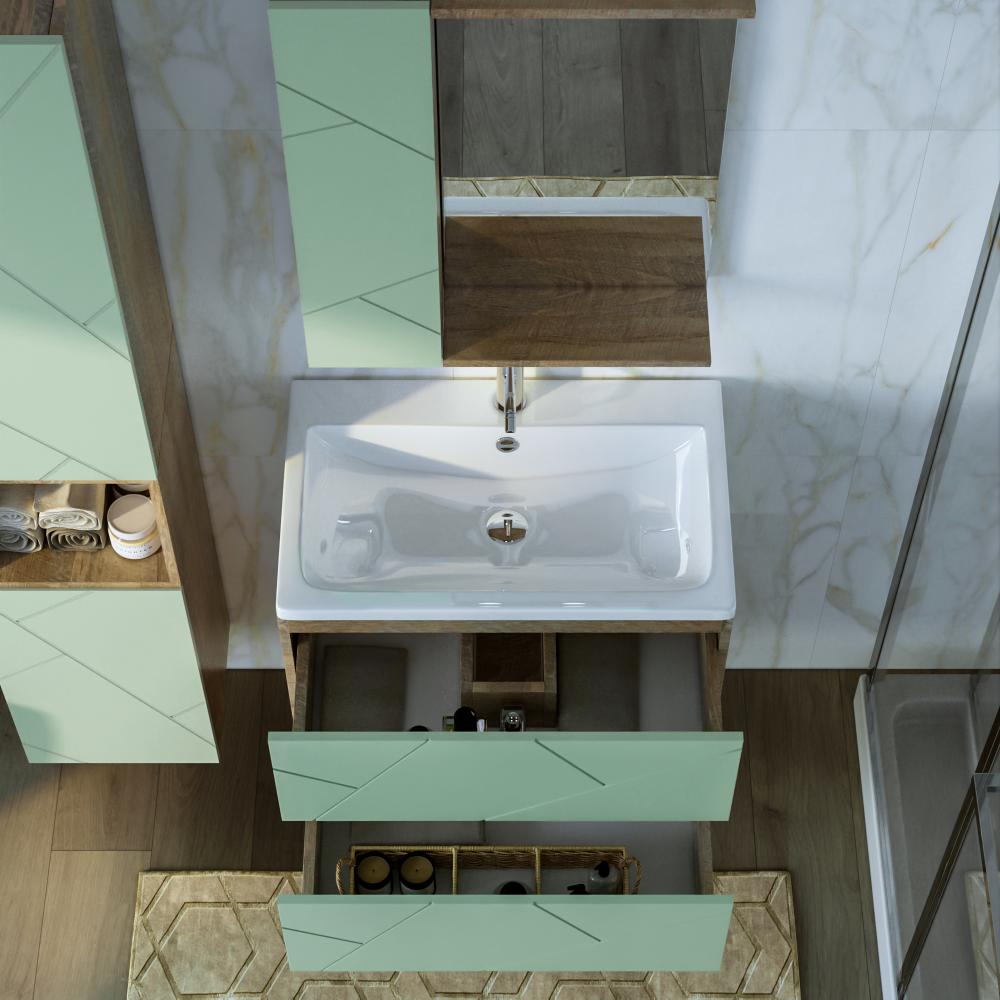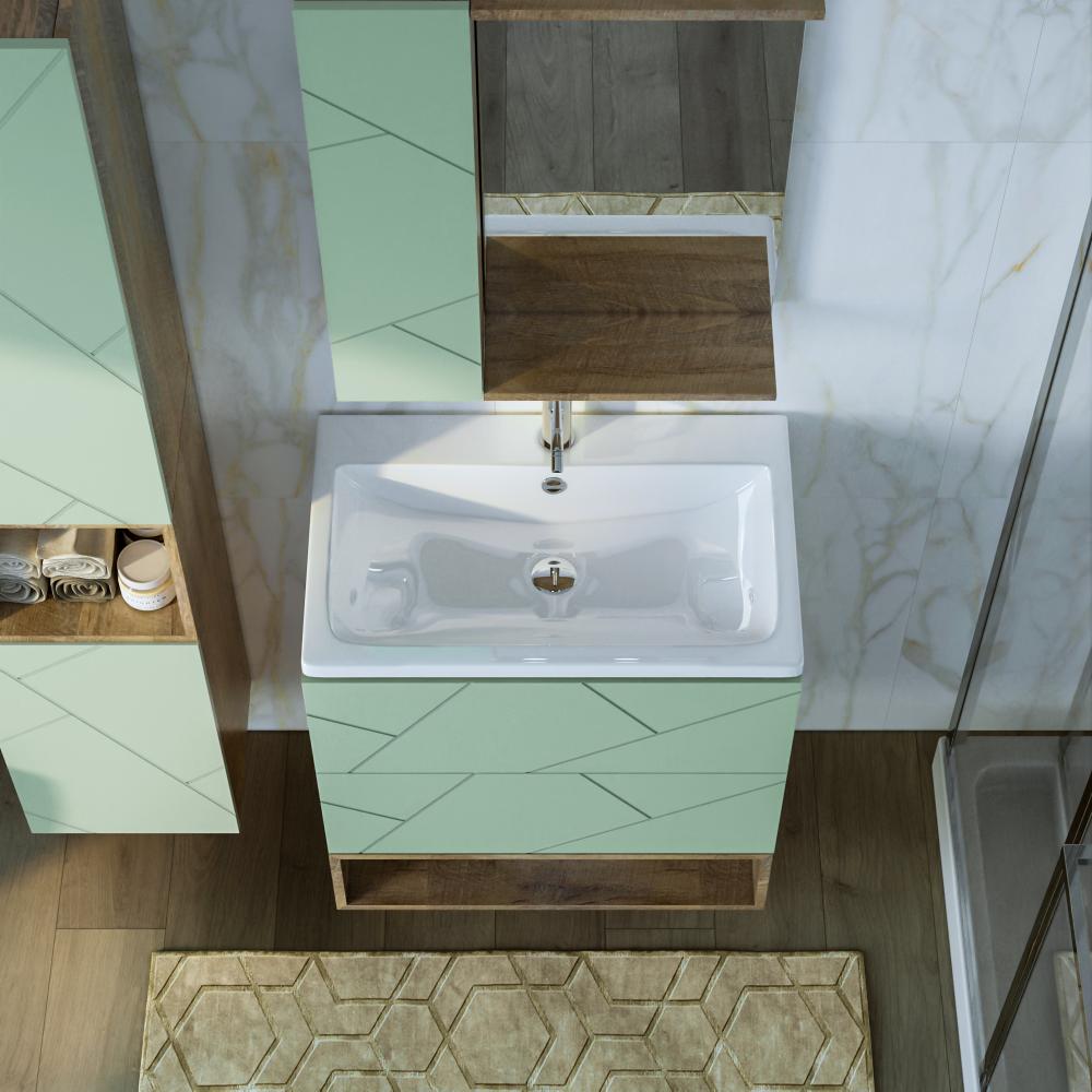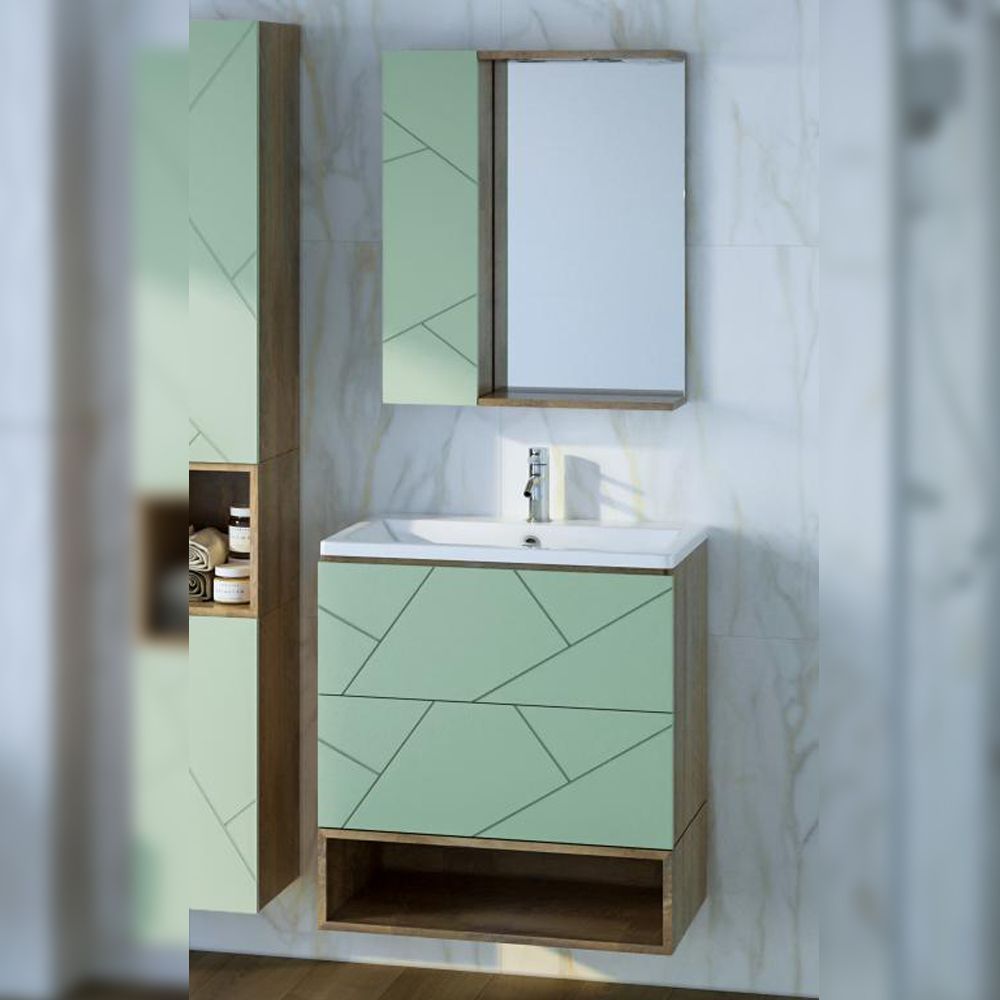 Комплект мебели Бриклаер КРИСТАЛЛ состоит из: Тумба под раковину подвесная Бриклаер КРИСТАЛЛ фисташковый, 70 см, Раковина Cersanit Como UM-COM70/1, 70 см, Ниша для тумбы Бриклаер КРИСТАЛЛ 70 см, дуб гранж песочный, Зеркало Бриклаер КРИСТАЛЛ 40 см, дуб гранж песочный, Шкаф навесной с дверью Бриклаер КРИСТАЛЛ 20 см, фисташковый.