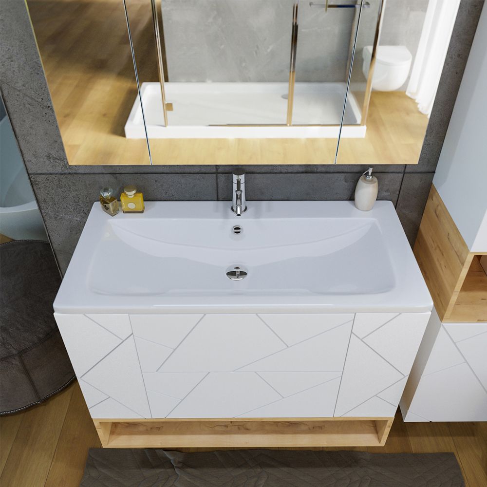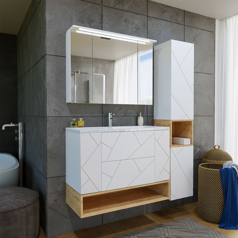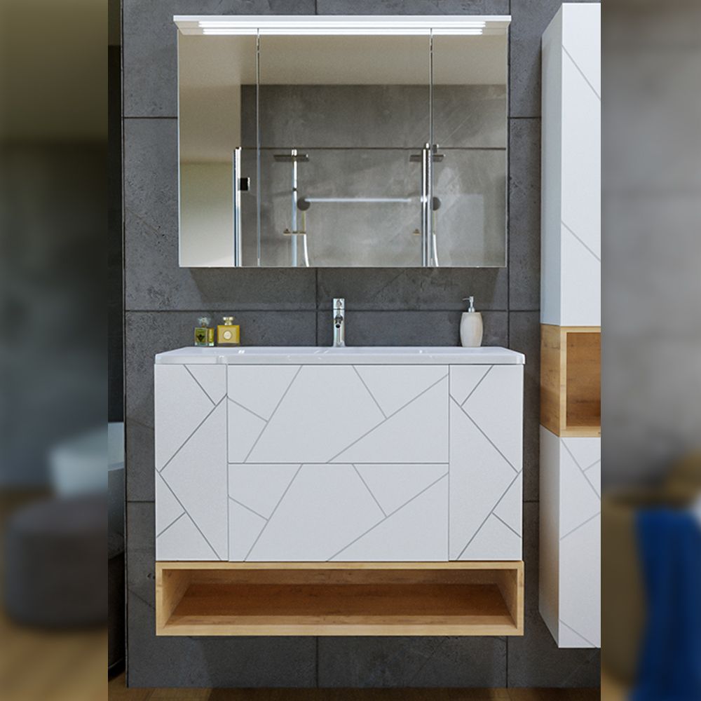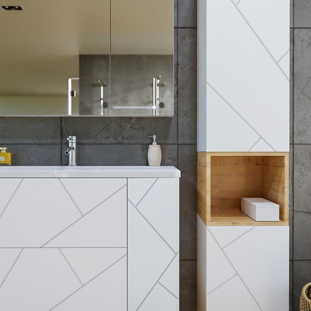 Комплект мебели Бриклаер КРИСТАЛЛ состоит из: Тумба под раковину подвесная Бриклаер КРИСТАЛЛ белый, 70 см, Раковина Cersanit Como UM-COM70/1, 70 см, Ниша для тумбы Бриклаер КРИСТАЛЛ 70 см, дуб бунратти, Зеркальный шкаф Бриклаер КРИСТАЛЛ 75 см, белый.