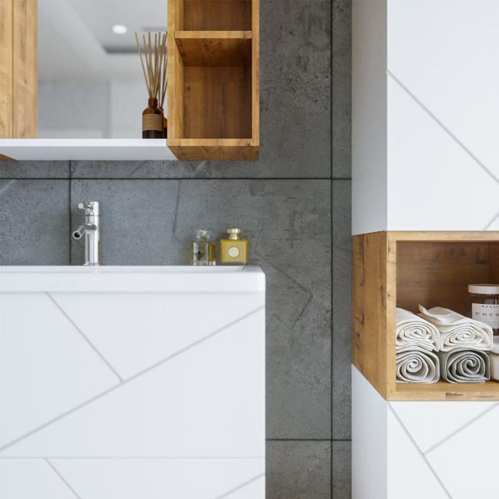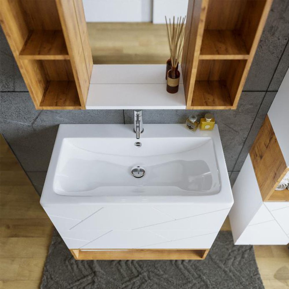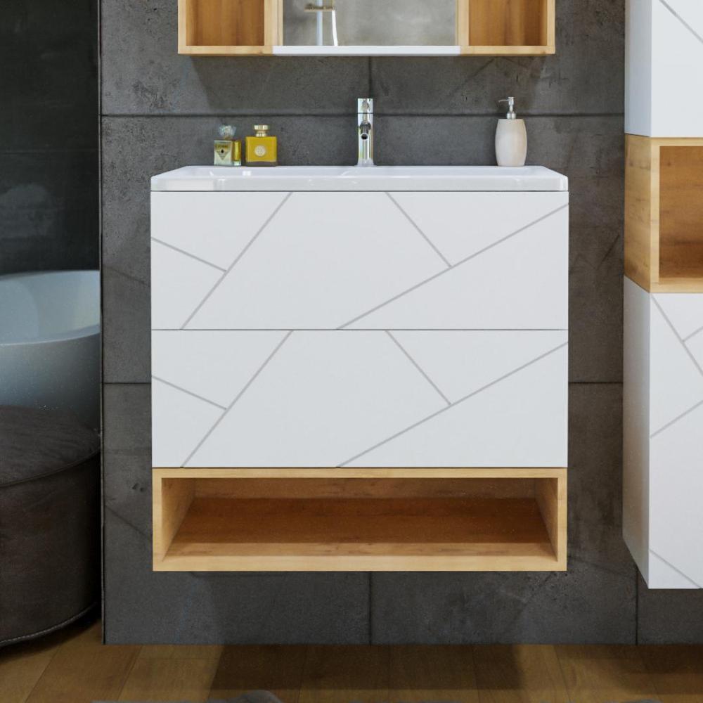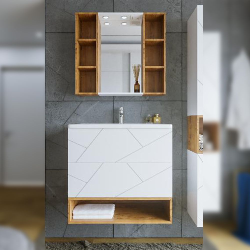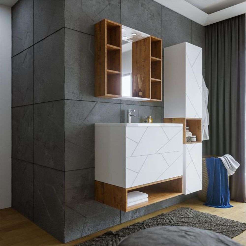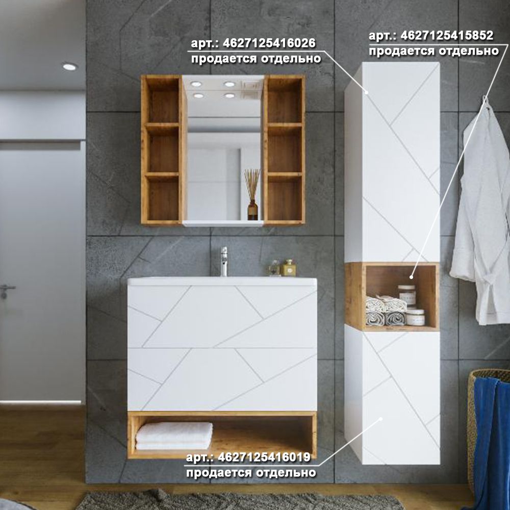 Комплект мебели Бриклаер КРИСТАЛЛ состоит из: Тумба под раковину подвесная Бриклаер КРИСТАЛЛ белый, 70 см, Раковина Cersanit Como UM-COM70/1, 70 см, Ниша для тумбы Бриклаер КРИСТАЛЛ 70 см, дуб бунратти, Зеркало Бриклаер КРИСТАЛЛ 40 см, белый, Шкаф навесной открытый Бриклаер КРИСТАЛЛ 20 см, дуб бунратти 2 шт..