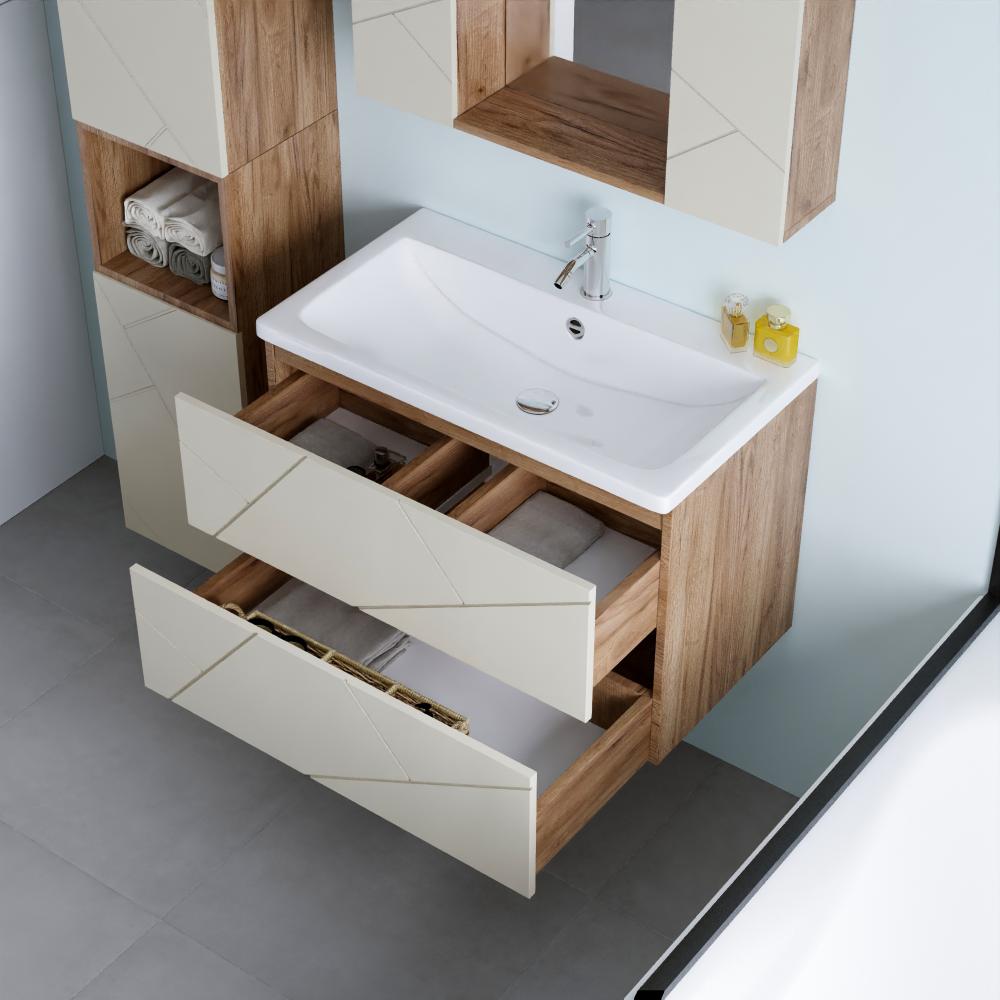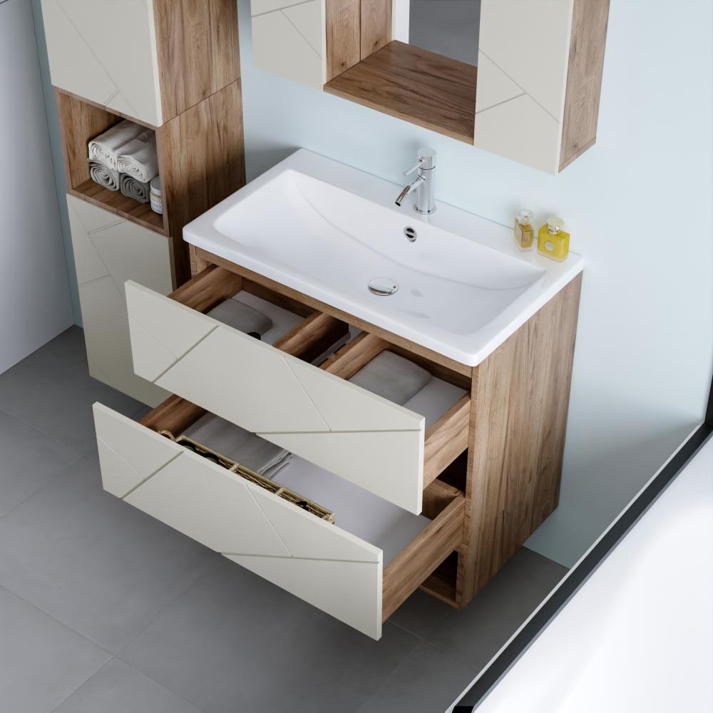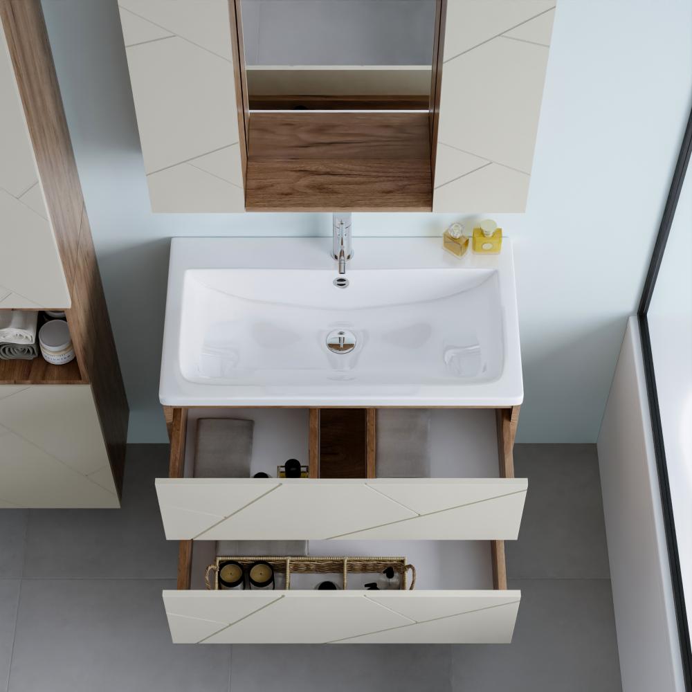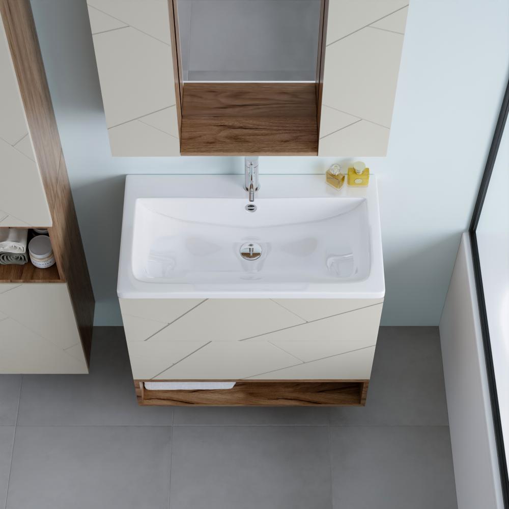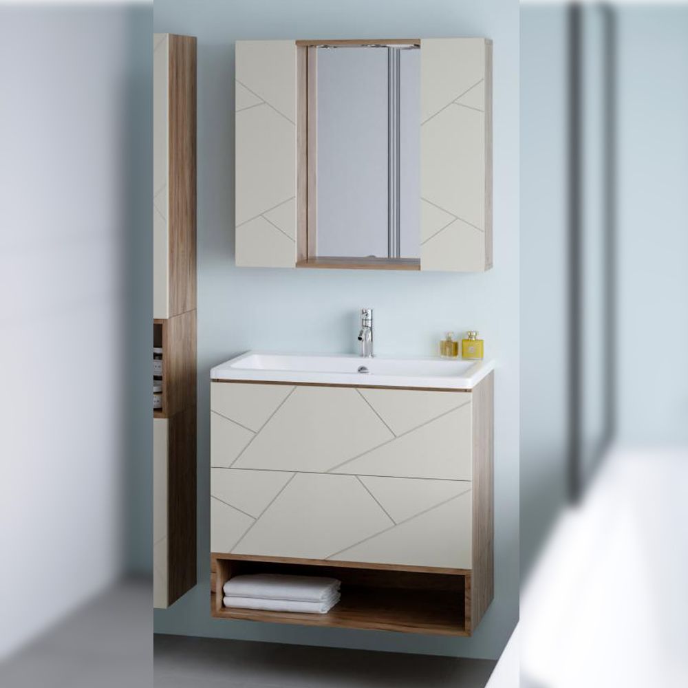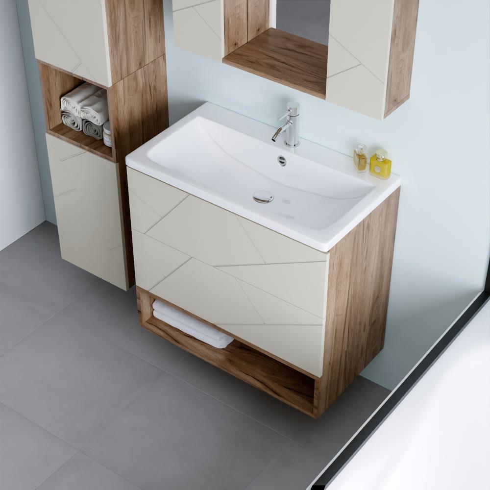 Комплект мебели Бриклаер КРИСТАЛЛ состоит из: Тумба под раковину подвесная Бриклаер КРИСТАЛЛ латте, 80 см, Раковина Cersanit Como UM-COM80/1, 80 см, Ниша для тумбы Бриклаер КРИСТАЛЛ 80 см, дуб крафт табачный, Зеркало Бриклаер КРИСТАЛЛ 40 см, дуб крафт табачный, Шкаф навесной с дверью Бриклаер КРИСТАЛЛ 20 см, латте 2 шт..
