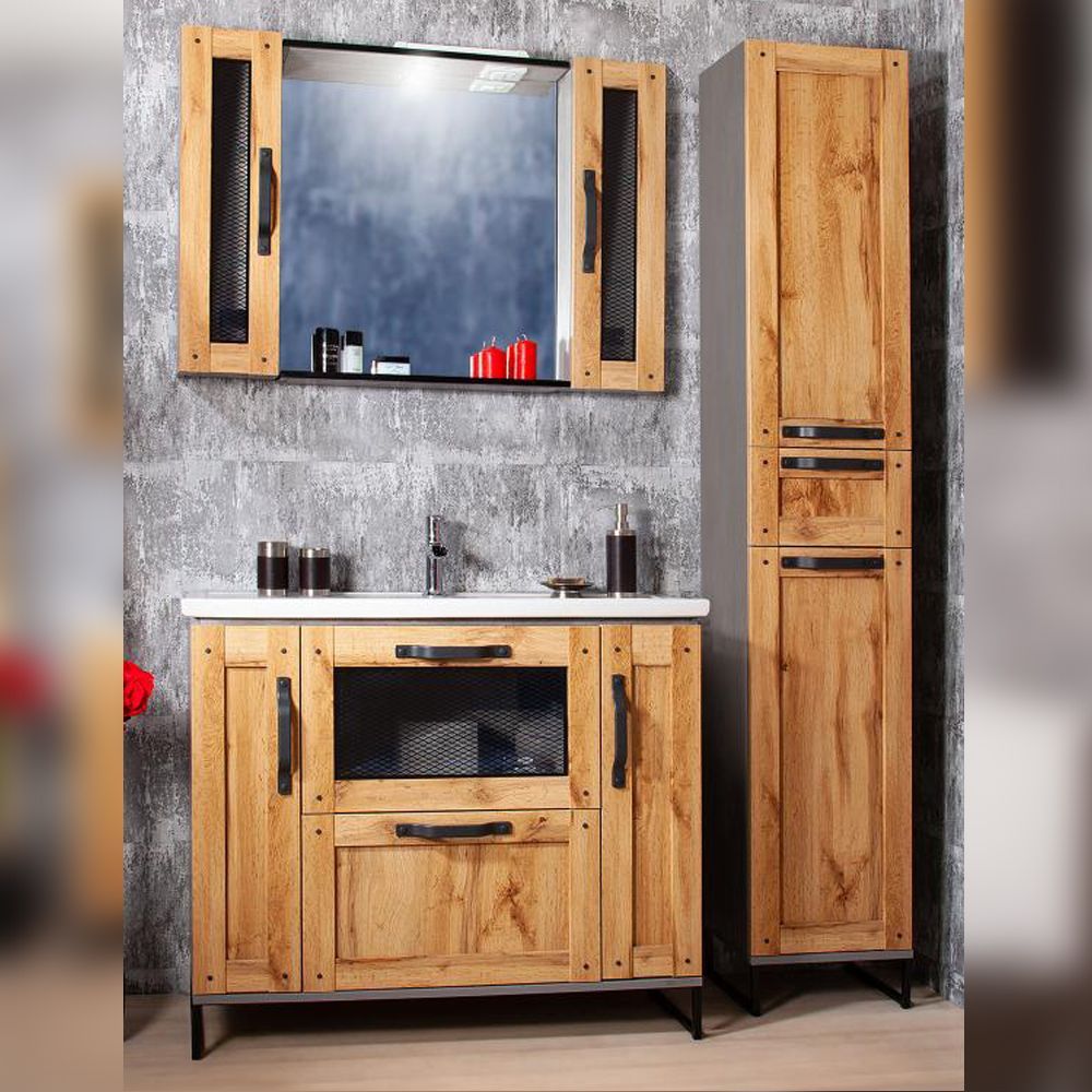 Комплект мебели Бриклаер ЛОФТ состоит из: Тумба под раковину напольная Бриклаер ЛОФТ метрополитен грей, 100 см, Раковина Paola Mario 1000, белый, Зеркало Бриклаер ЛОФТ 60 см, метрополитен грей, Шкаф навесной Бриклаер ЛОФТ 20 см, метрополитен грей 2 шт, Пенал Бриклаер ЛОФТ 34 см, метрополитен грей.