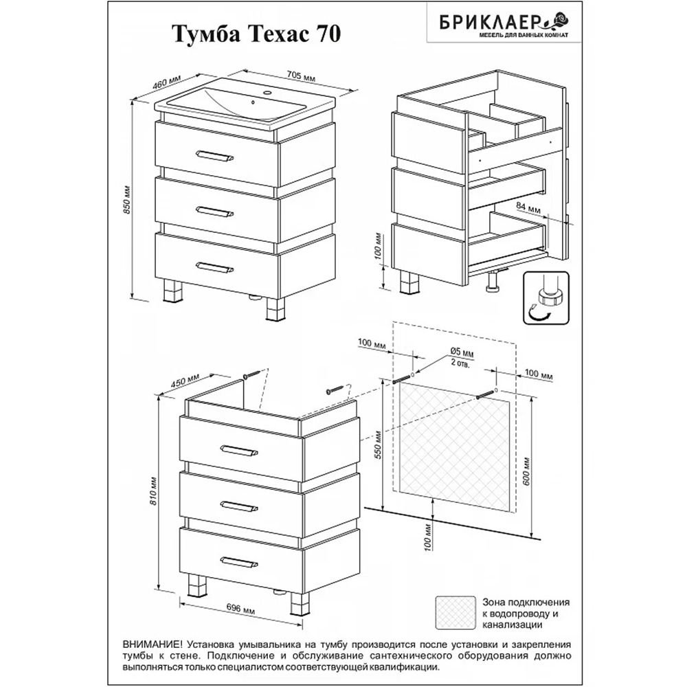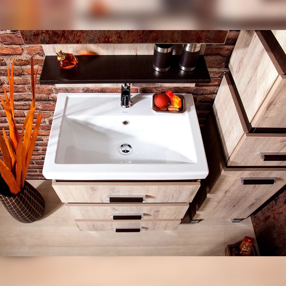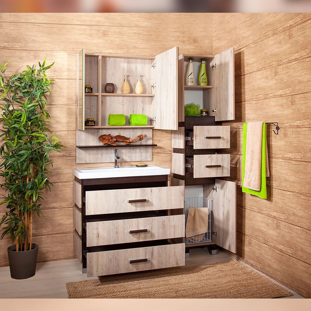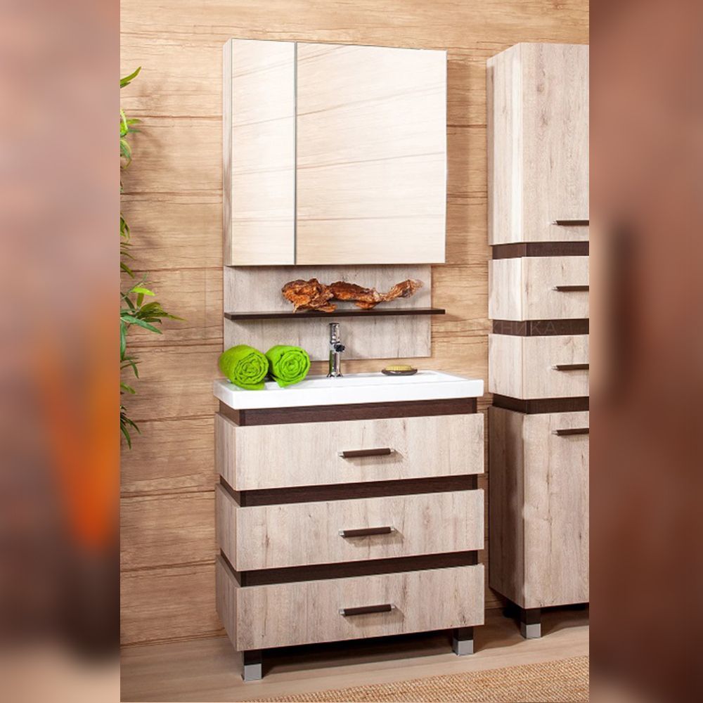Комплект мебели Бриклаер ТЕХАС состоит из: Тумба под раковину напольная Бриклаер ТЕХАС кантри/венге, 70 см, Раковина Kirovit Фостер 700, 71 см, Зеркальный шкаф Бриклаер ТЕХАС 75 см, кантри/венге.