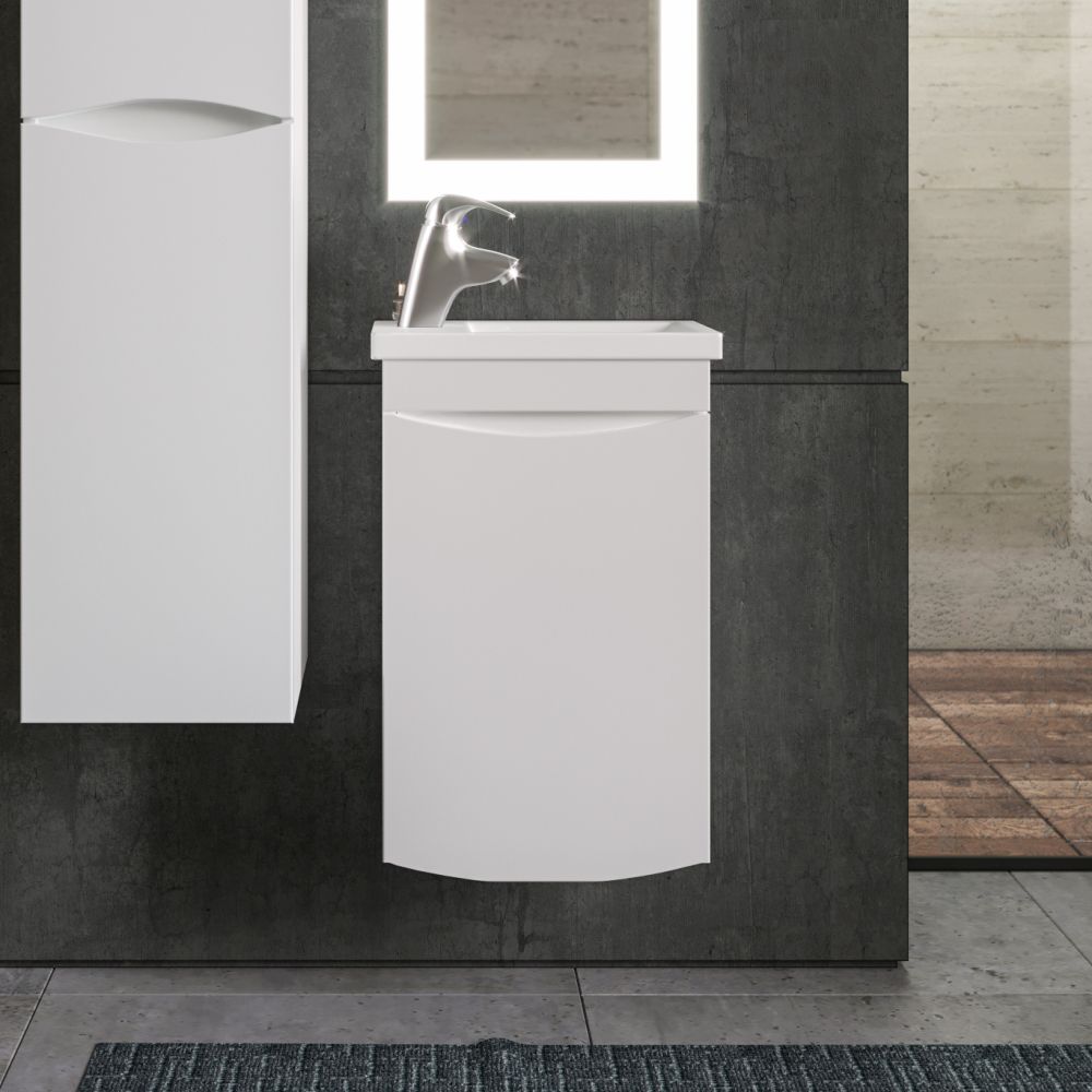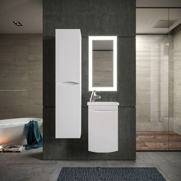 Комплект мебели Бриклаер ВЕГА состоит из: Тумба под раковину подвесная Бриклаер ВЕГА белый , 40 см, Раковина Cersanit Como UM-COM40/1, 40 см, Пенал Бриклаер ВЕГА 35 см, белый, Зеркало Бриклаер Вега 40 LED подсветка на взмах руки, часы.