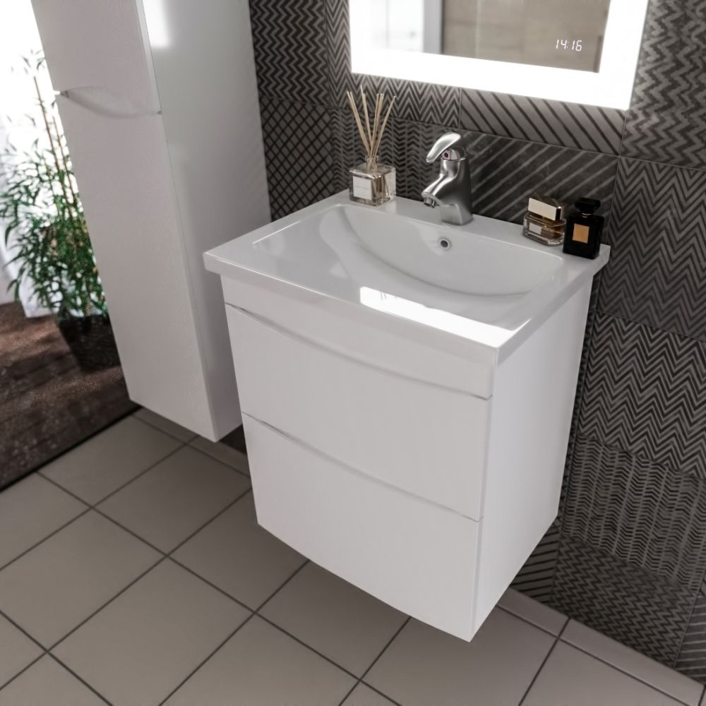 Комплект мебели Бриклаер ВЕГА состоит из: Тумба под раковину подвесная Бриклаер ВЕГА белый с двумя ящиками, 60 см, Раковина Cersanit Como UM-COM60/1, 60 см, Пенал Бриклаер ВЕГА 35 см, белый, Зеркало Бриклаер Вега 55 LED подсветка на взмах руки, часы.
