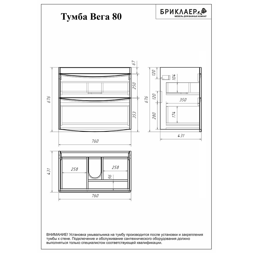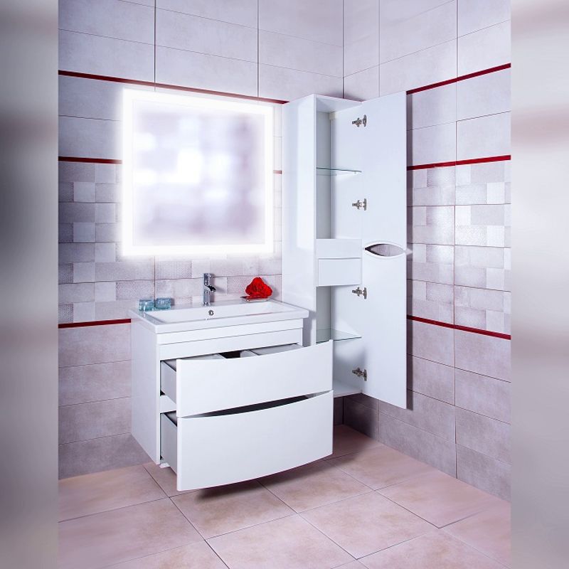 Комплект мебели Бриклаер ВЕГА состоит из: Тумба под раковину подвесная Бриклаер ВЕГА белый , 80 см, Раковина Cersanit Como UM-COM80/1, 80 см, Пенал Бриклаер ВЕГА 35 см, белый, Зеркало Бриклаер Вега/Мальта 75 LED подсветка на взмах руки, часы.