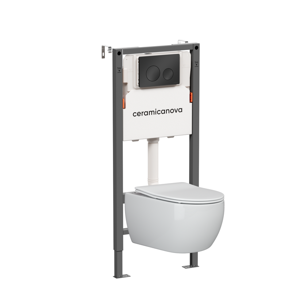 Комплект Подвесной унитаз Игра (Play) Безободковый (Rimless) + Система инсталляции Баланс (Balance) кнопка Круг (Circle), черный матовый