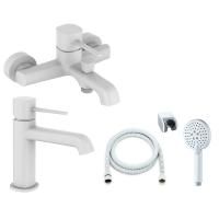 Набор смесителей Karl M05-311w от немецкой компании Orange хорошо впишется в минималистичный интерьер. Данные смесители изготовлены из латуни, а потому устойчивы к коррозии и высоким температурам. Аэратор и форсунки ручного душа с функцией легкого очищения в совокупности с надежным керамическим картриджем обеспечат стабильную подачу воды.