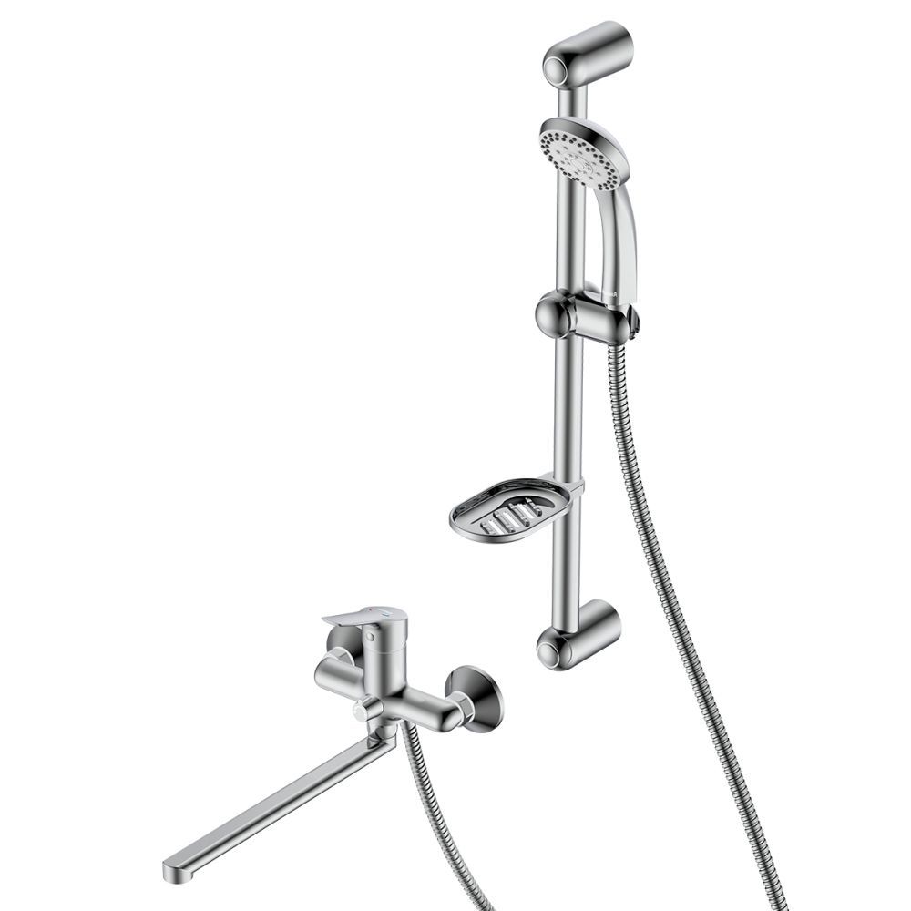 Корпус смесителя с картриджем с керамическими пластинами, переключателем-дивертором с керамическими пластинами и металлической рукояткой Душевой шланг 1,5 м 5-функциональная душевая лейка Штанга Полочка Плоский поворотный излив с аэратором Присоединительная группа для настольного крепления |
