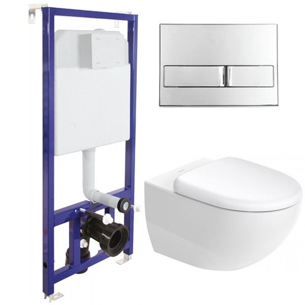 Безободковый унитаз Duravit Architec 45720900A1 с крышкой-сиденьем Soft Close, с инсталляцией Berges Wasserhaus Novum L3 040213.