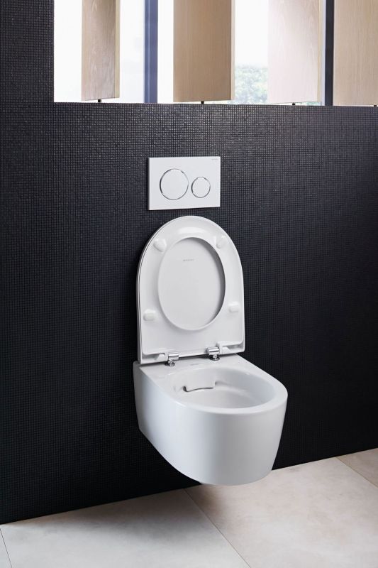 Комплект унитаза Geberit iCon 500.362.TC.I с инсталляцией Duofix и сиденьем soft-close. Эффективная безободковая система смыва.