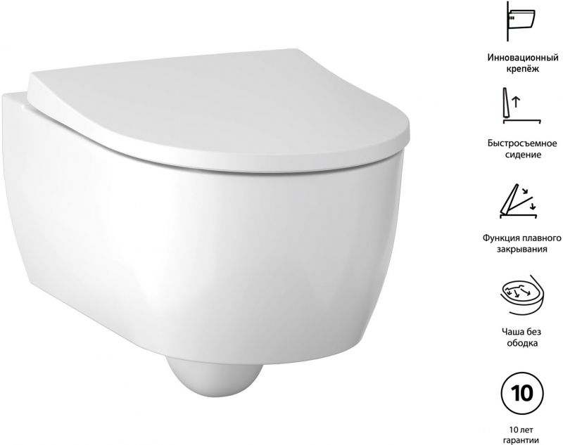 В комплекте поставки: инсталляция Duofix 111.362.00.5 со смывным бачком скрытого монтажа Sigma 12, унитаз iCon 500.784.01.1, комплект звукоизоляции, быстросъемная крышка-сиденье Soft-Close, крепление к стене.