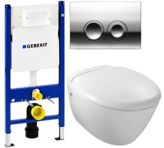 Подвесной унитаз Jacob Delafon Presquile E4440-00 с крышкой-сиденьем Soft Close, в комплекте с инсталляцией Geberit Duofix Delta UP100 458.124.21.1 и кнопкой смыва Geberit Delta 21 115.125.21.1 цвета глянцевый хром.