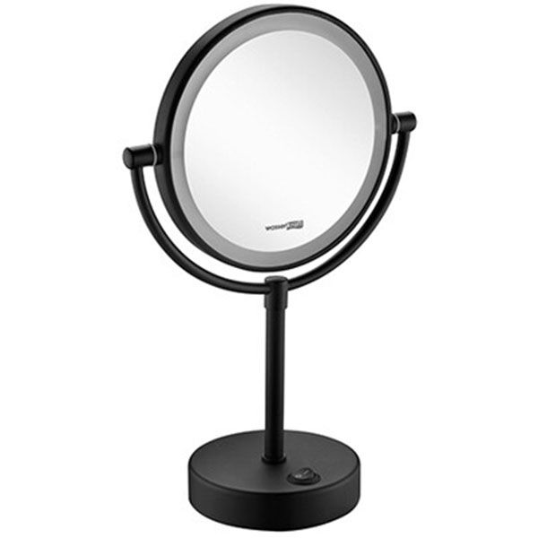 Двухстороннее настольное косметическое зеркало WasserKRAFT K-1005BLACK с подсветкой и увеличением.