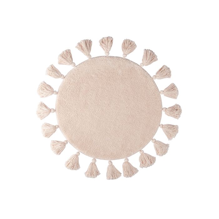 Мягкий круглый бежевый коврик для ванной диаметром 55 см с декоративными пушистыми кисточками, очень приятный на ощупь. Ворс из микрофибры отлично держит форму, легко чистится и быстро сохнет. Коврик подойдет для ванной и туалета, а также поможет создать уют в спальне или гостиной.