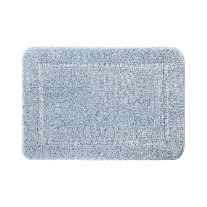 Мягкий коврик для ванной нежного голубого цвета с плотным невысоким ворсом (1 см), очень приятный на ощупь. Ворс из микрофибры отлично держит форму, легко чистится и быстро сохнет. Коврик подойдет для ванной и туалета.