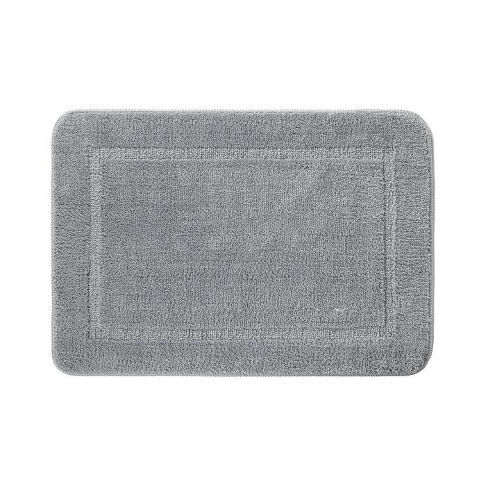 Мягкий коврик для ванной стильного серого цвета с плотным невысоким ворсом (1 см), очень приятный на ощупь. Ворс из микрофибры отлично держит форму, легко чистится и быстро сохнет.