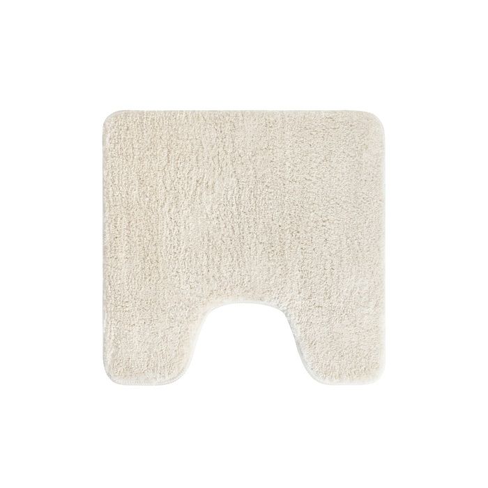 Мягкий коврик для ванной теплого бежевого цвета с плотным высоким ворсом (2 см), очень приятный на ощупь. Стриженый ворс из микрофибры отлично держит форму, легко чистится и быстро сохнет. Коврик имеет вырез под унитаз и предназначен для туалета.