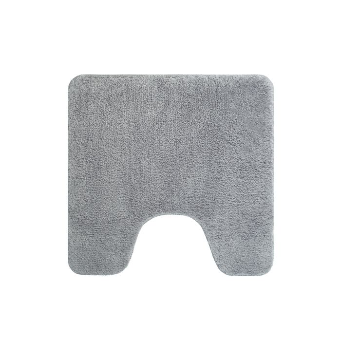 Мягкий коврик для ванной стильного серого цвета с плотным высоким ворсом (2 см), очень приятный на ощупь. Стриженый ворс из микрофибры отлично держит форму, легко чистится и быстро сохнет. Коврик имеет вырез под унитаз и предназначен для туалета.