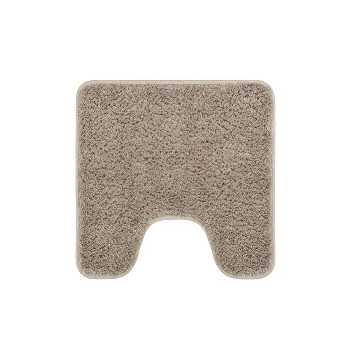 Мягкий коврик для ванной светло-коричневого цвета с плотным высоким ворсом (2 см), очень приятный на ощупь. Стриженый ворс из микрофибры отлично держит форму, легко чистится и быстро сохнет. Коврик имеет вырез под унитаз и предназначен для туалета.