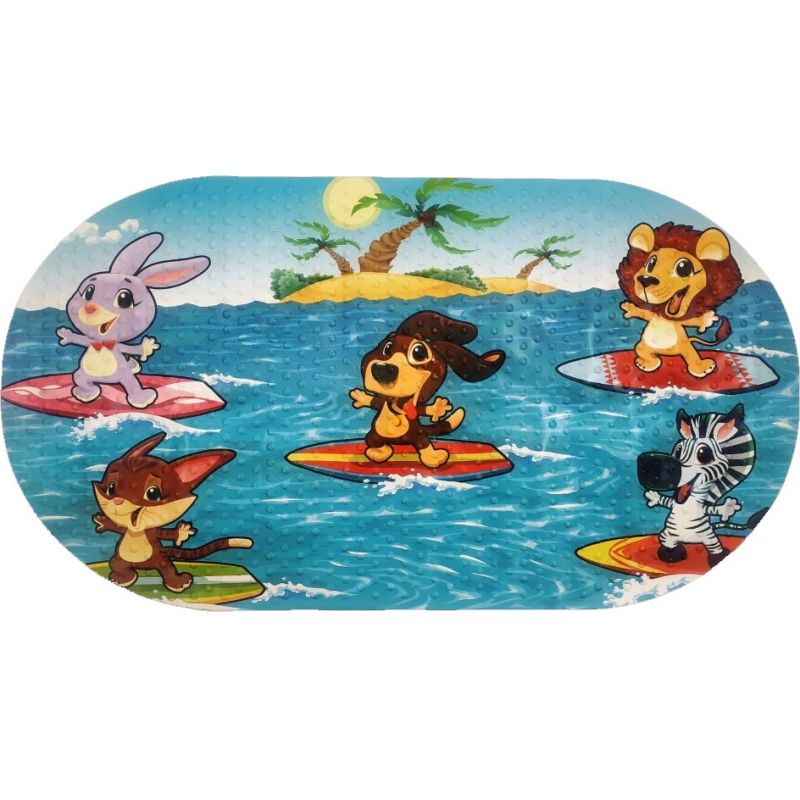 Противоскользящий SPA коврик для ванны Fora 67х36 FOR-SPA15 с фотопринтом детский сёрфинг - изготовлен из ПВХ.