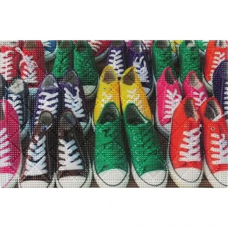 Коврик для входной двери Fora 40х60 FOR-DOOR14 Кеды придверный грязезащитный - за счет особой рельефной поверхности собирает влагу с обуви и быстро сохнет.