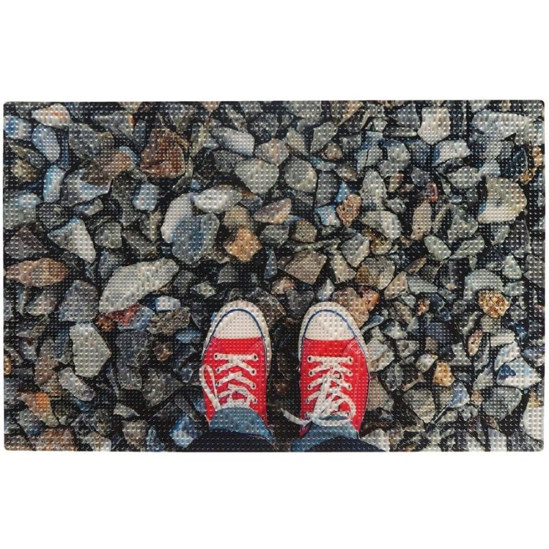 Коврик для входной двери Fora 40х60 FOR-DOOR21 Кеды на камнях придверный грязезащитный - за счет особой рельефной поверхности собирает влагу с обуви и быстро сохнет.